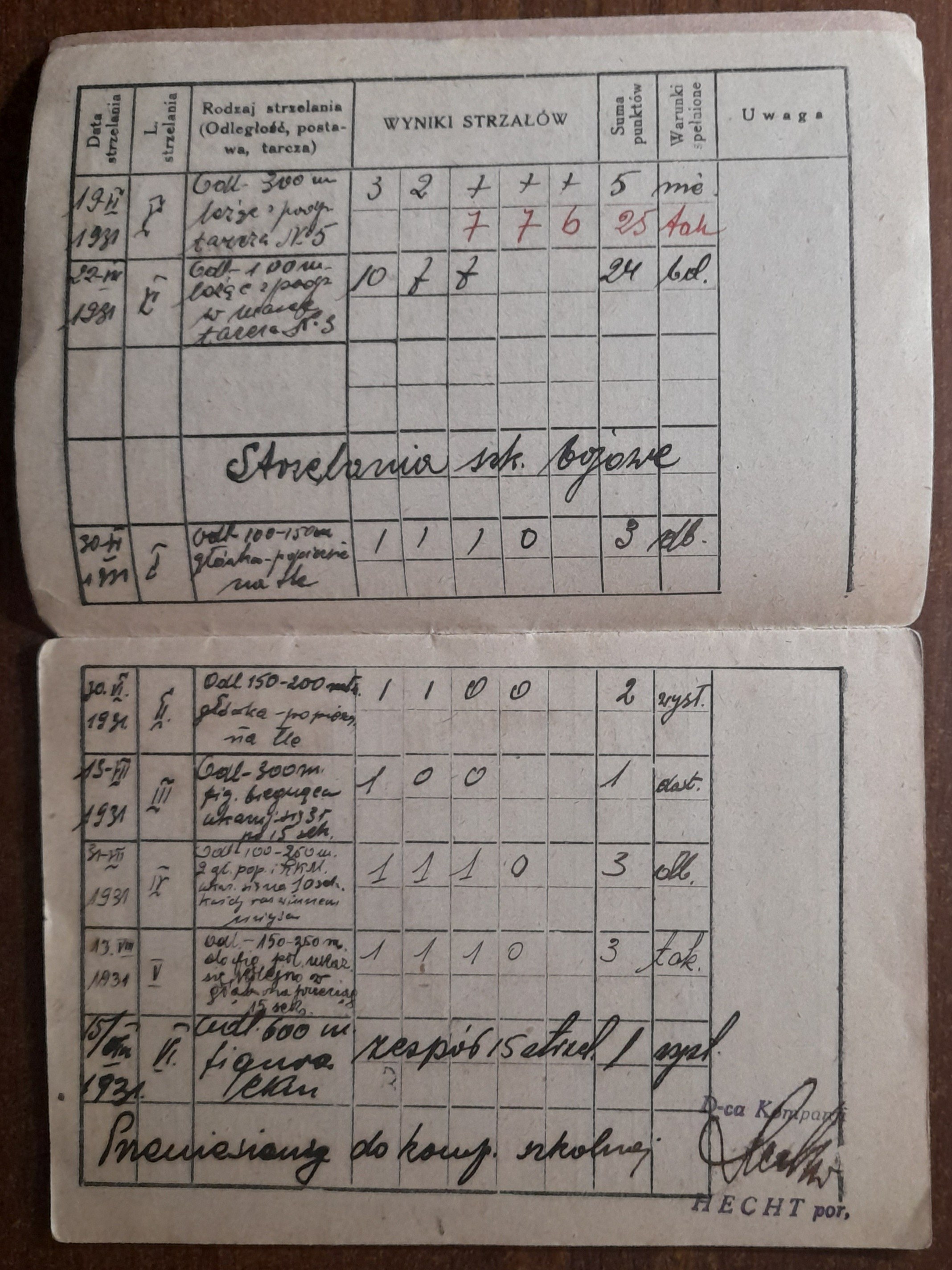 Książeczka strzelecka na nazwisko Gądek Władysław na rok 1931.