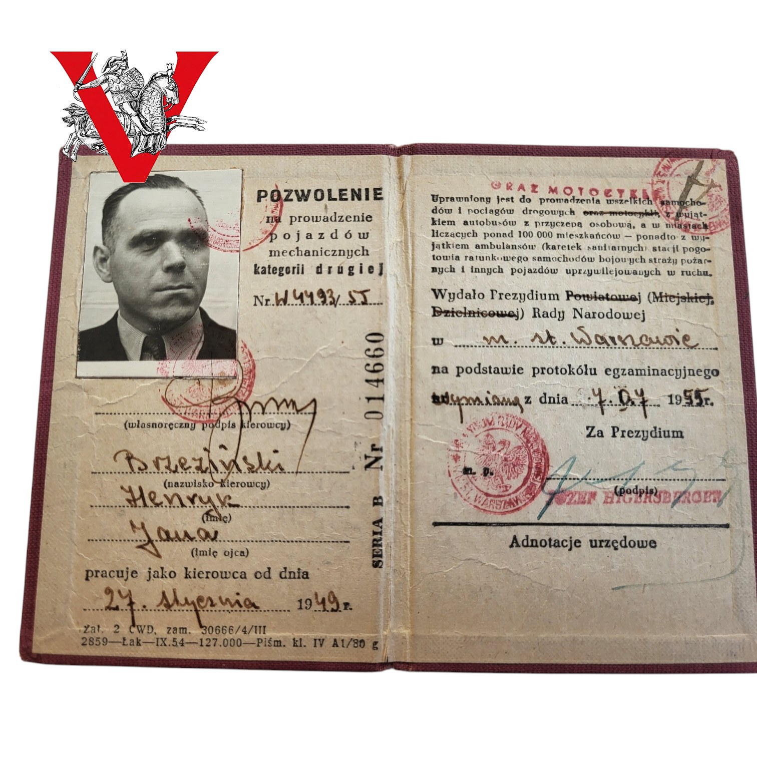 Legitymacja , Pozwolenie na Prowadzenie Pojazdów 1955, Warszawa