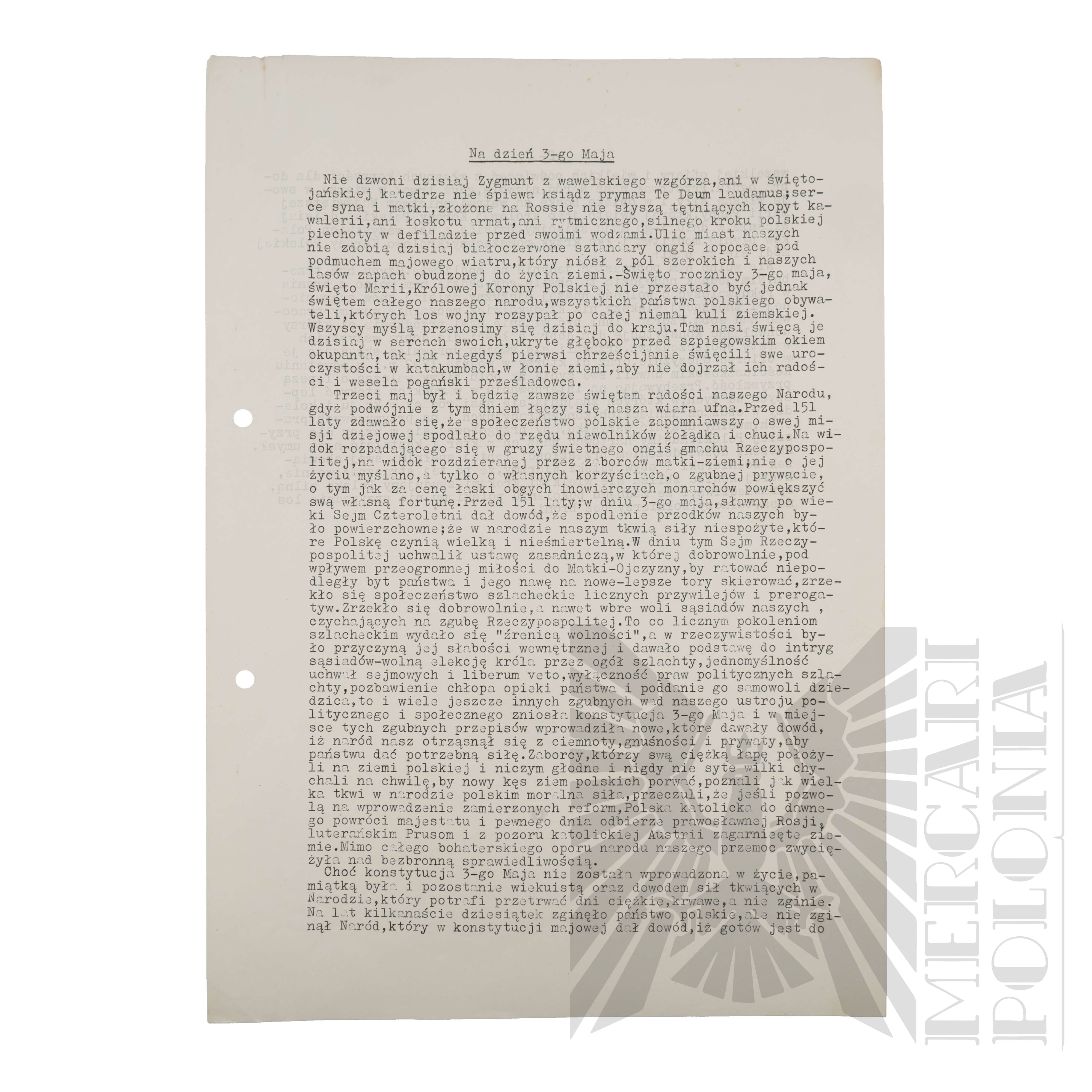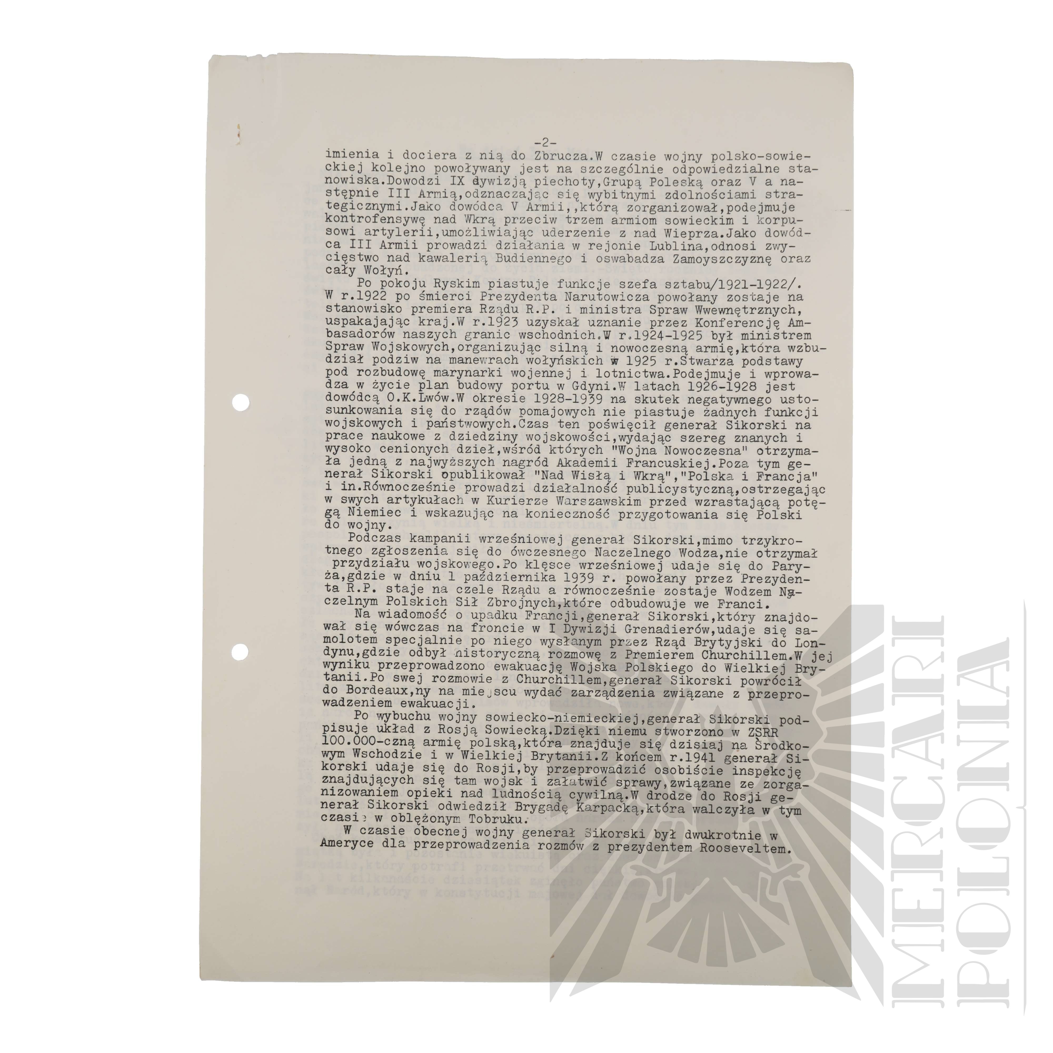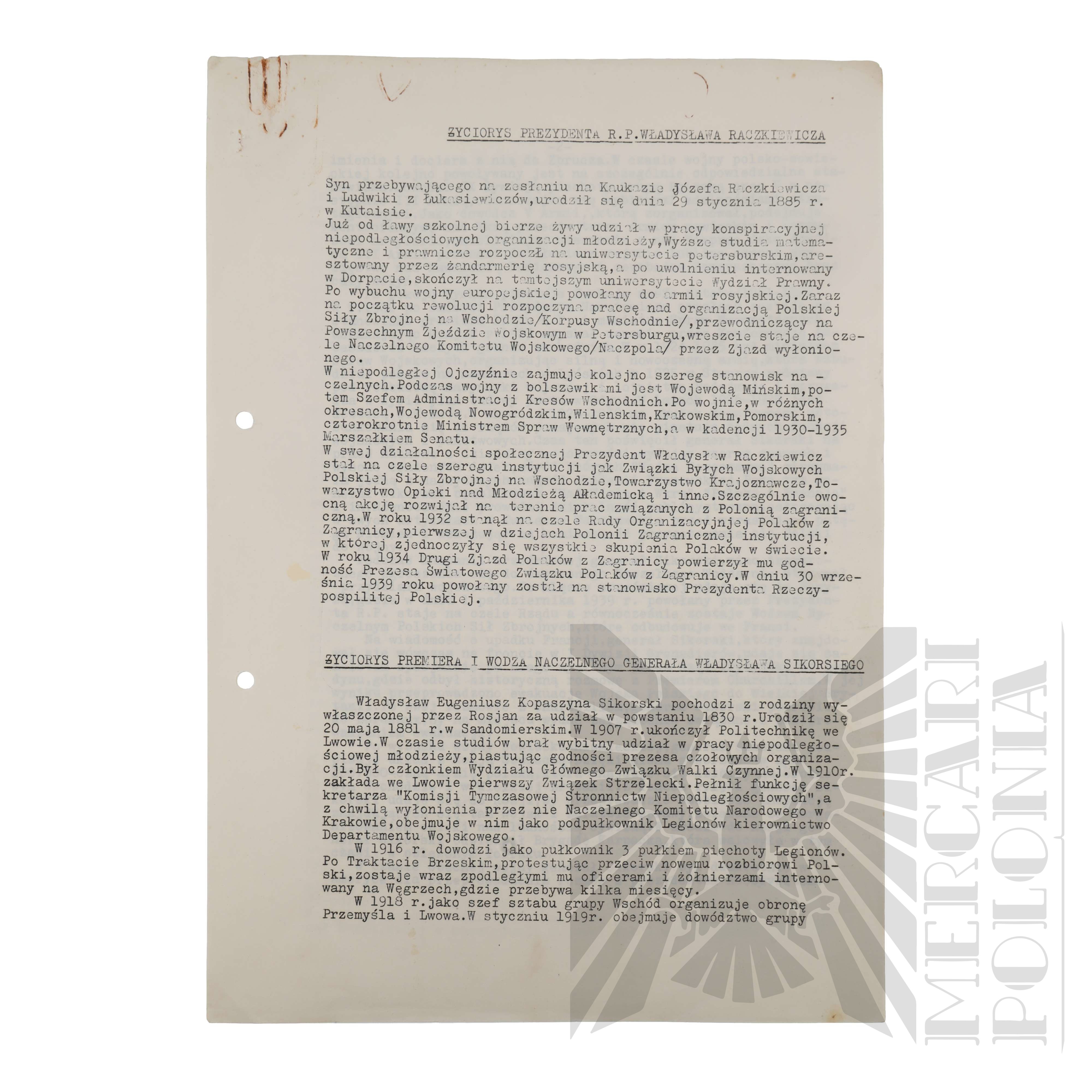 Maszynopis Życiorysu Prezydenta R.P. Władysława Raczkiewicza? Wymiary 21 cm x 29 cm. Stan jak na zdjęciach.