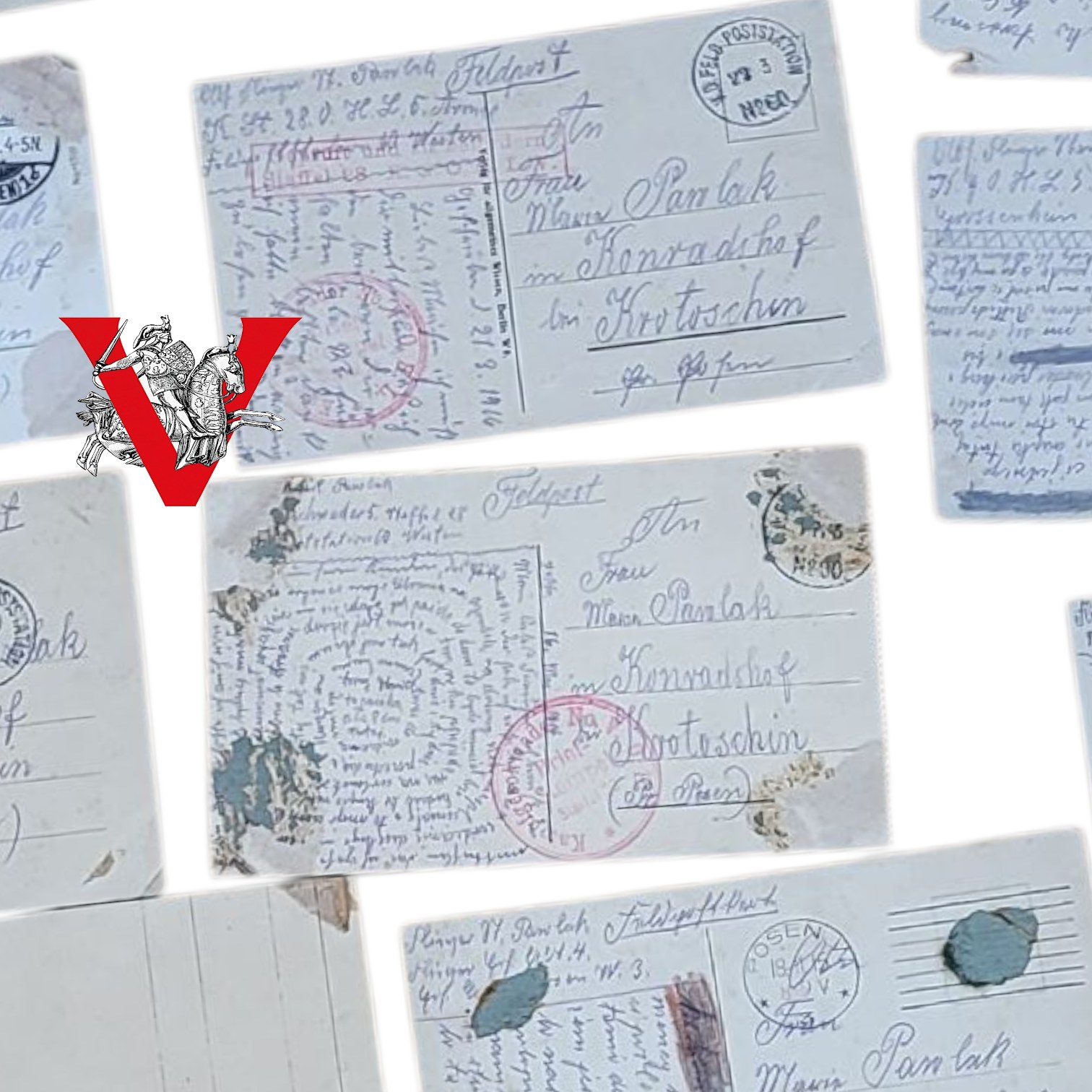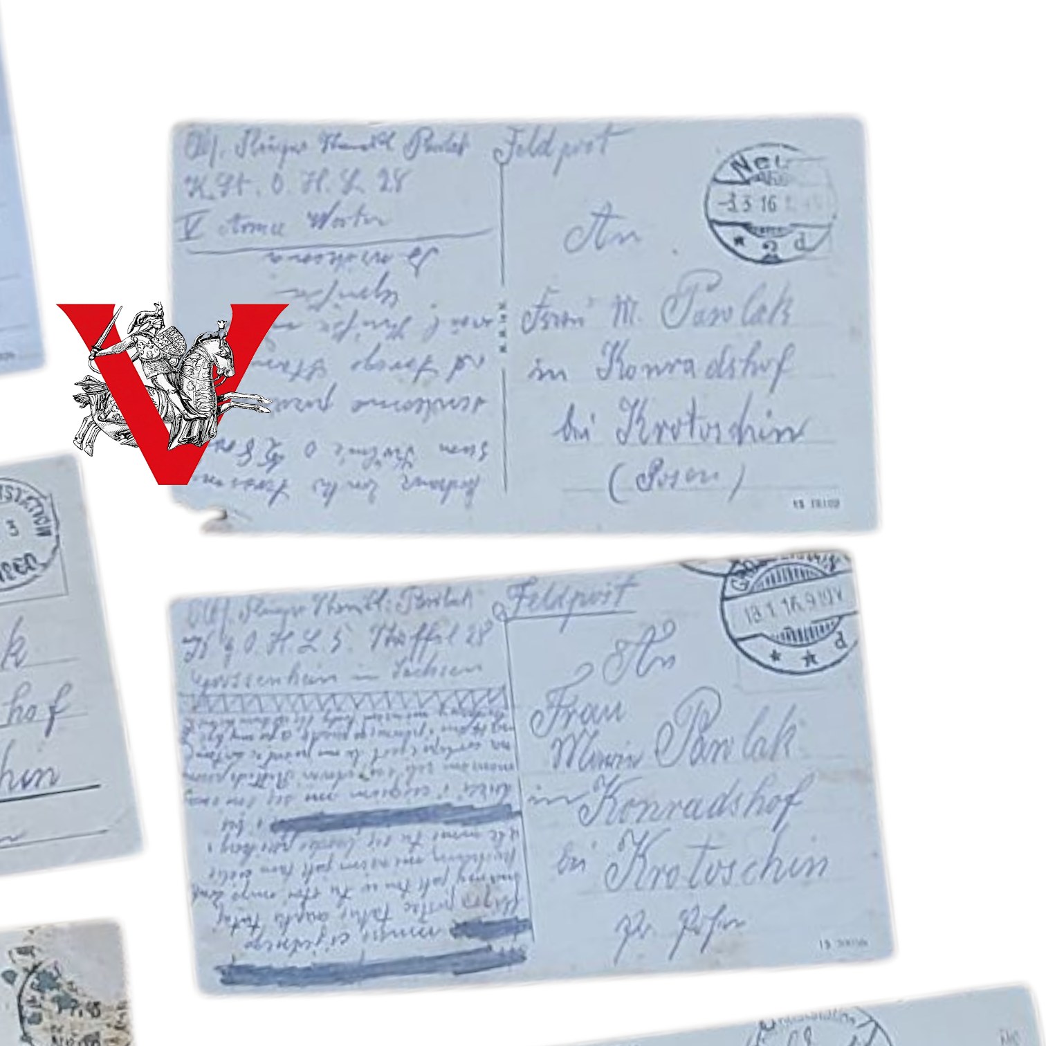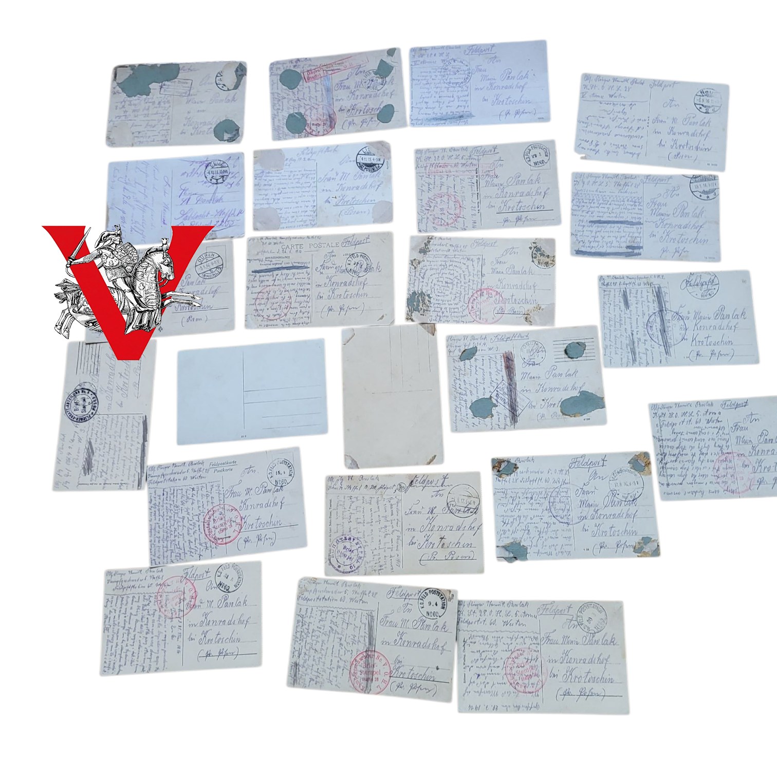 Wyjątkowy i autentyczny zbiór 24 oryginalnych listów i kart z frontu, wysyłanych na trasie Poznań – Krotoszyn przez polskiego żołnierza służącego w Armii Pruskiej.