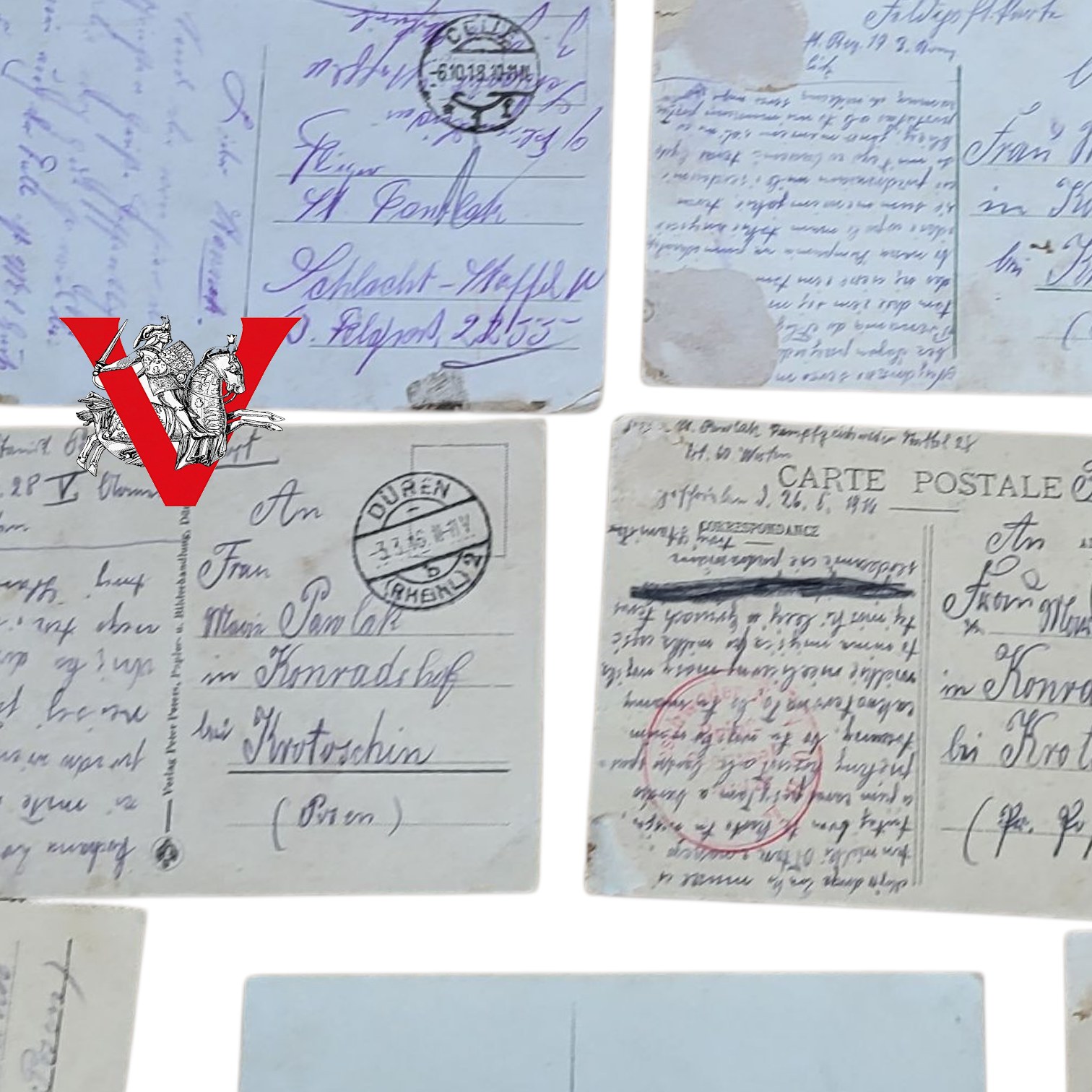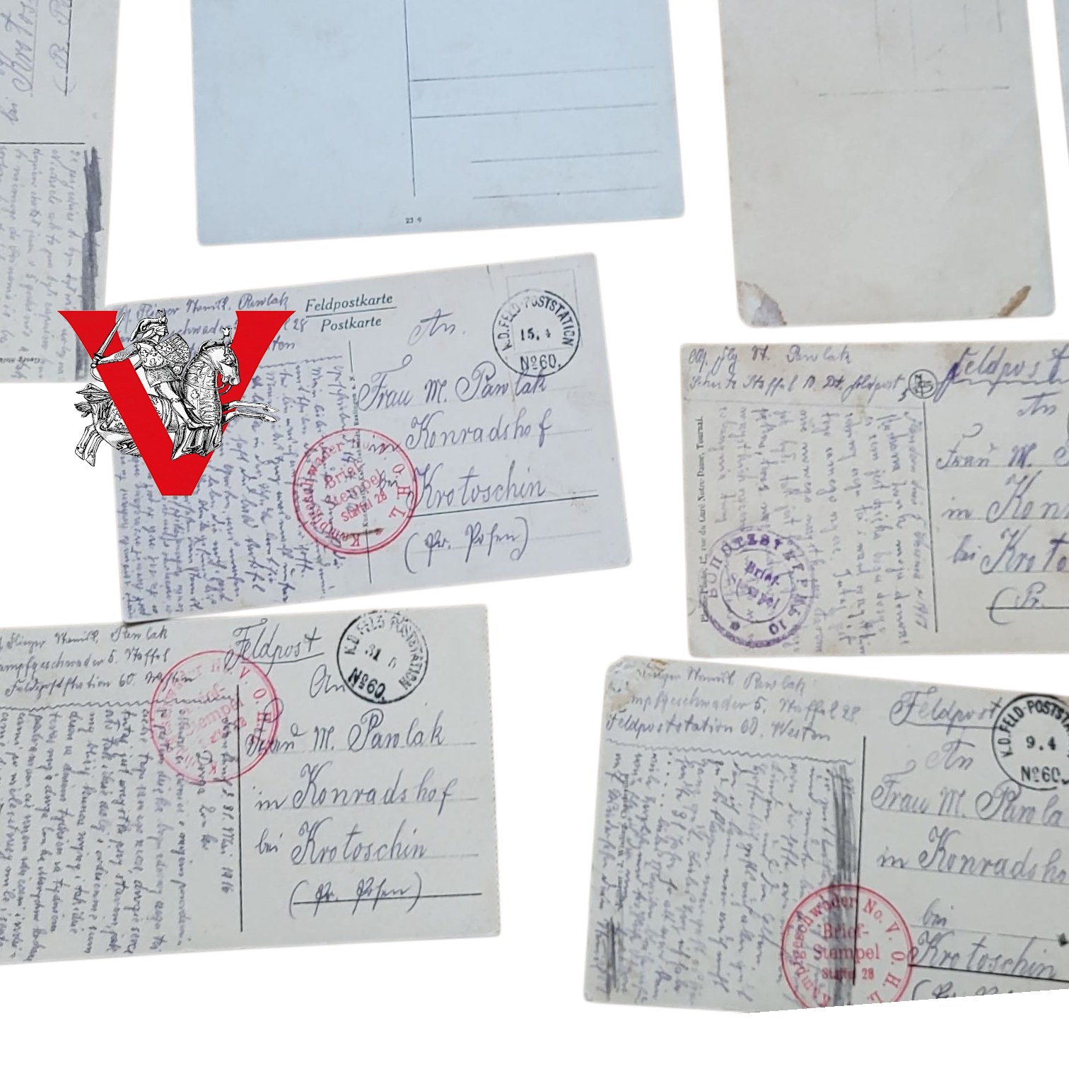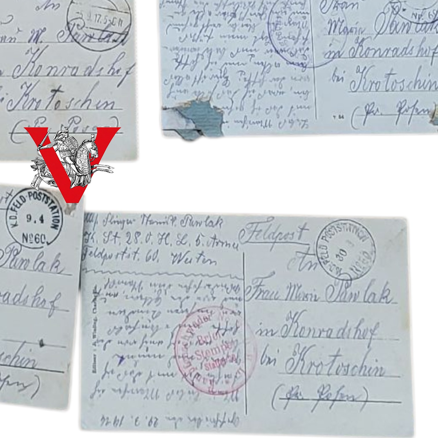 Wyjątkowy i autentyczny zbiór 24 oryginalnych listów i kart z frontu, wysyłanych na trasie Poznań – Krotoszyn przez polskiego żołnierza służącego w Armii Pruskiej.