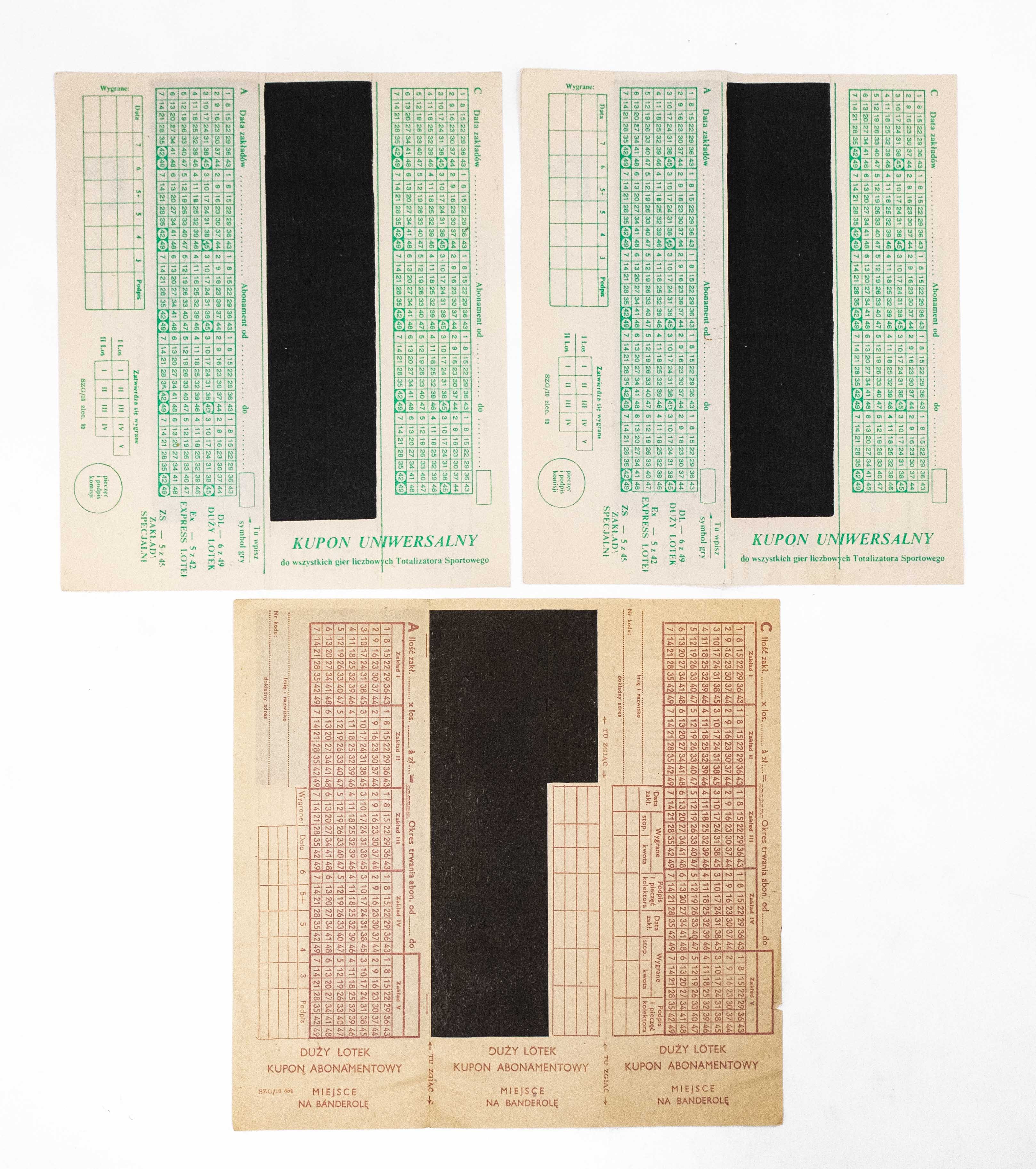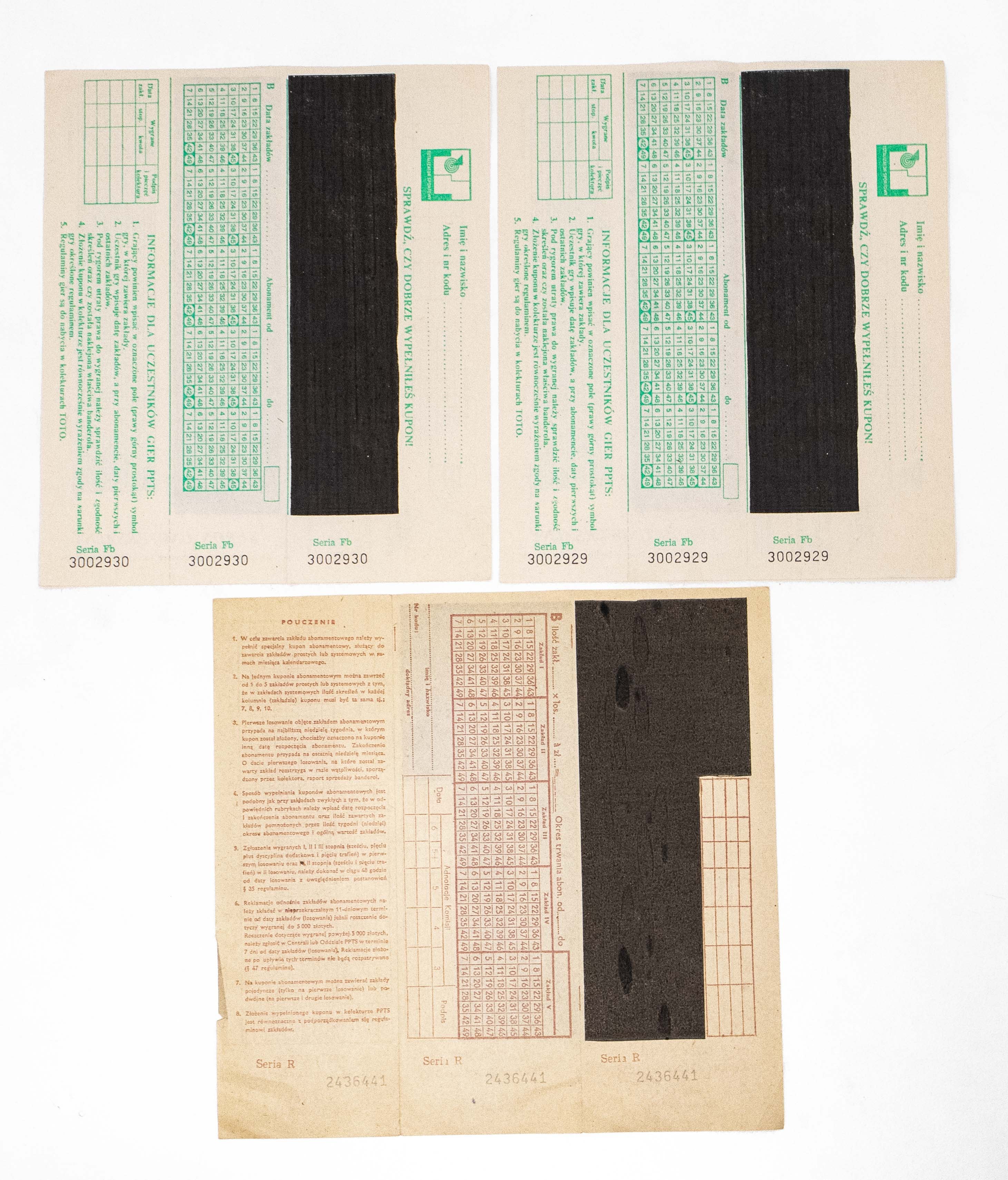 3 kupony Totalizatora Sportowego, blankiety. Dwa z 1992 roku, jeden starszy.
