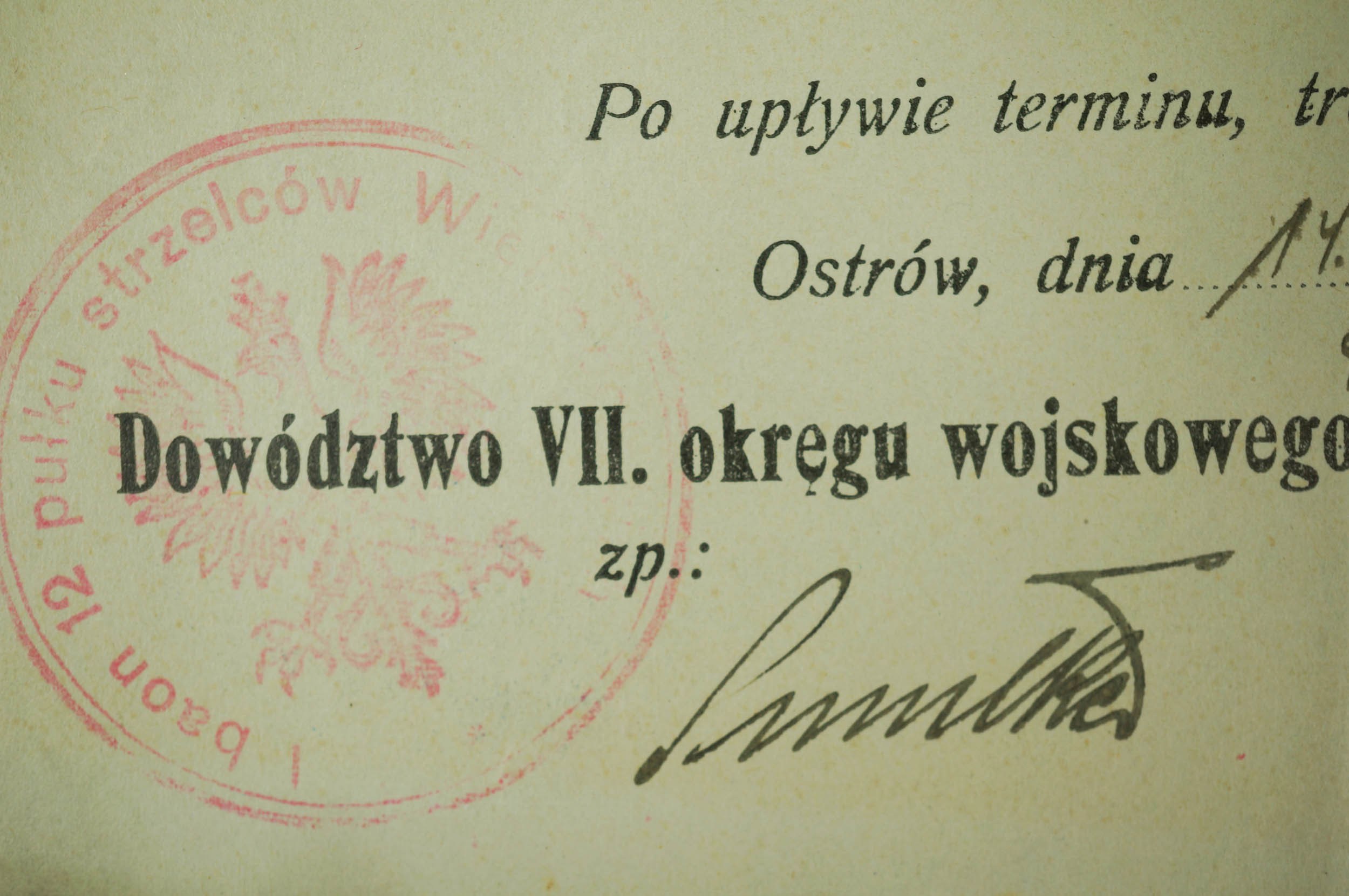 rzadki dokument z wczesnego okresu po zakończeniu Powstania Wielkopolskiego