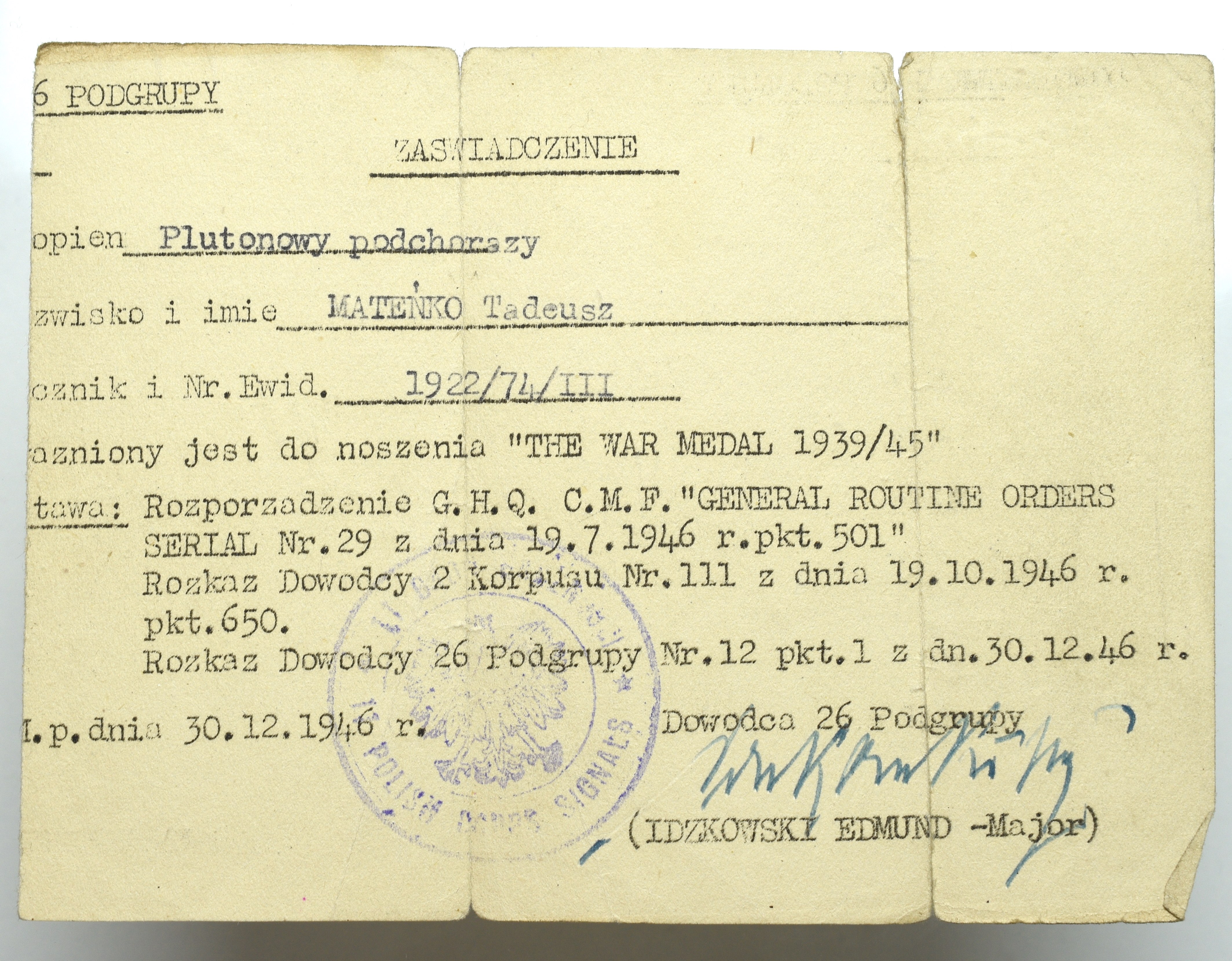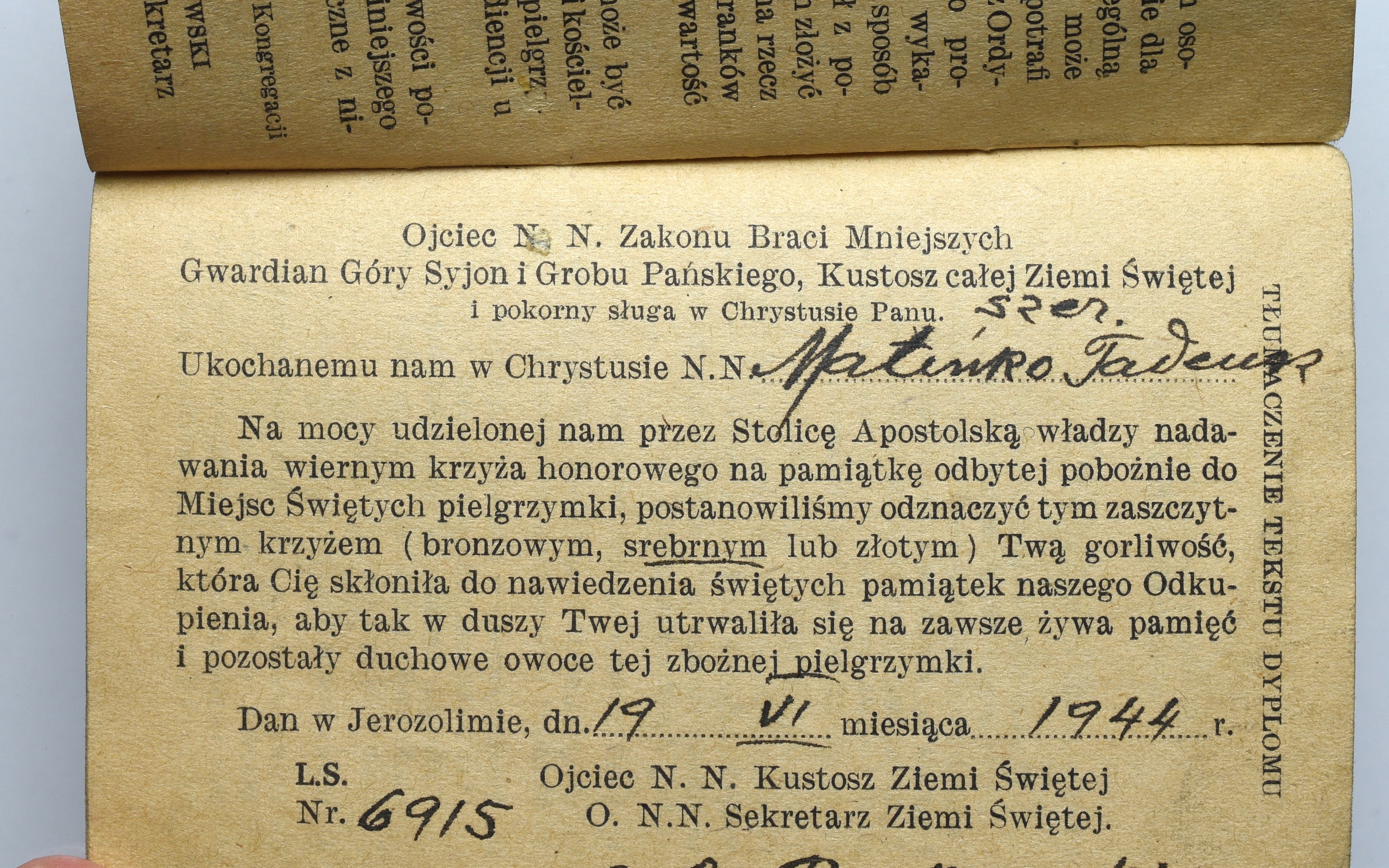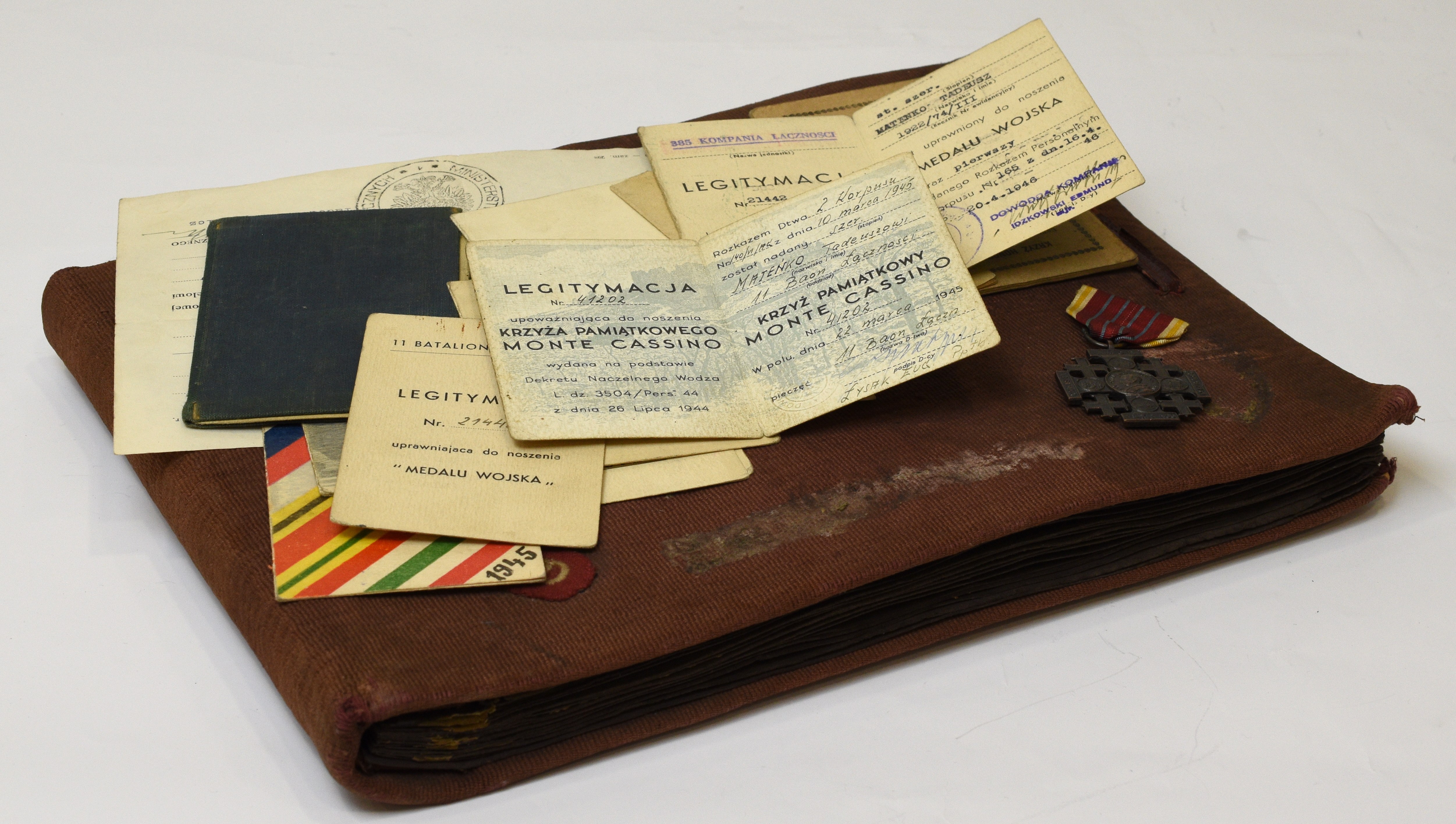 Album w stanie słabym, dokumenty i krzyż w stanach dobry do bardzo dobrego.