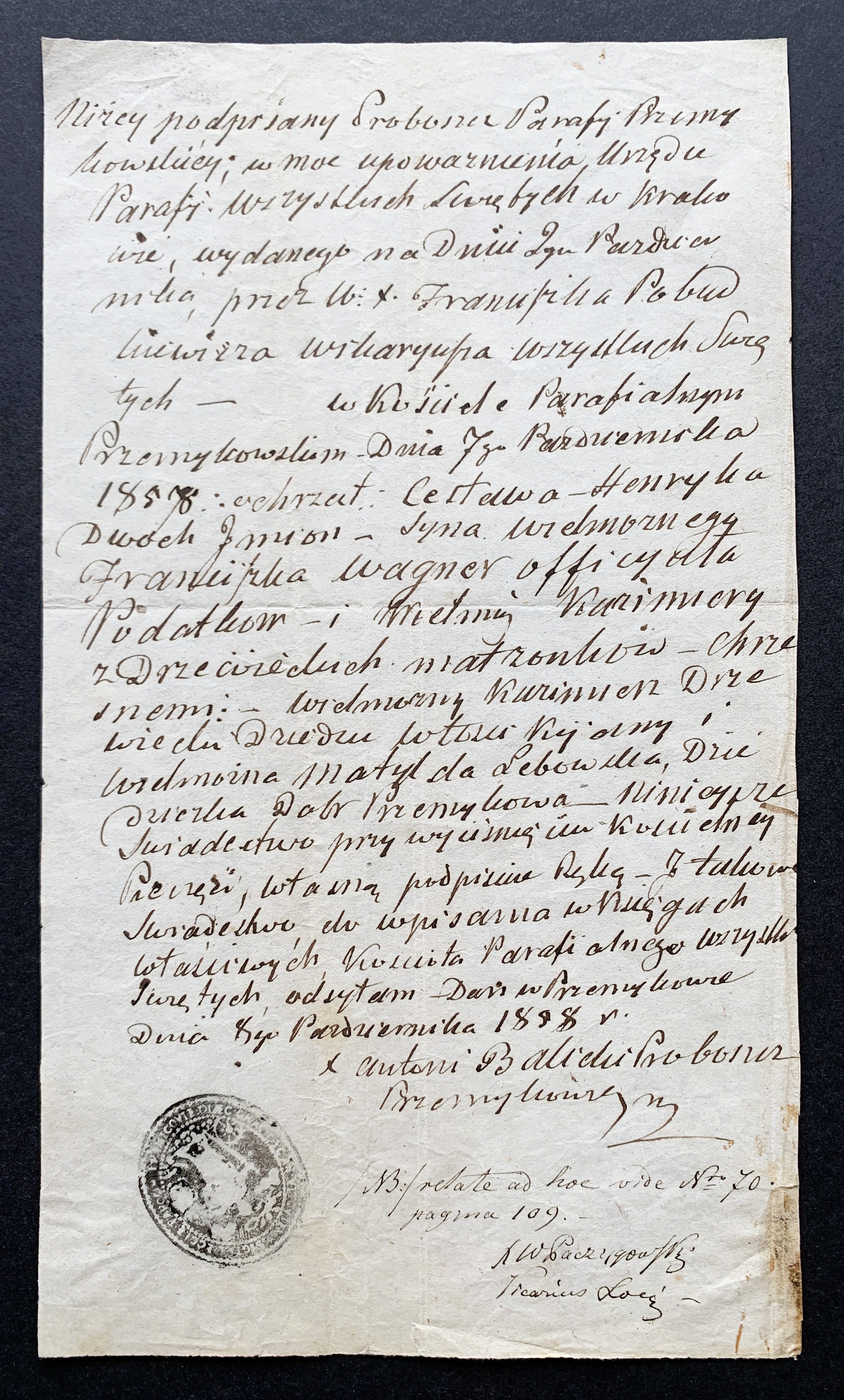 Format:16,5x29cm. Ślady po składaniu. Pieczęć.
