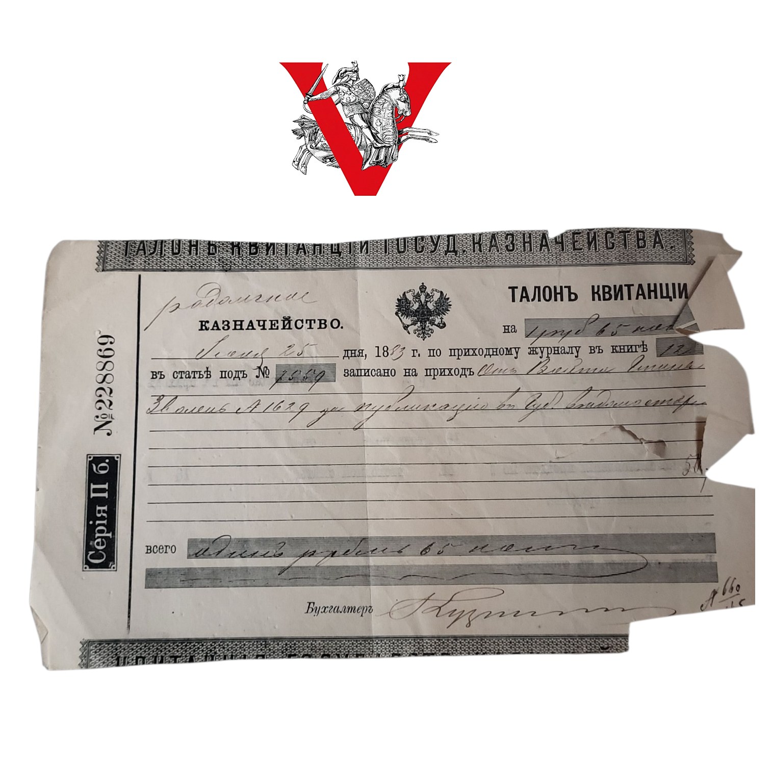 Rosja Carska , Zabór Rosyjki, Asygnata 1 RUBEL 65 kopiejek 1883r