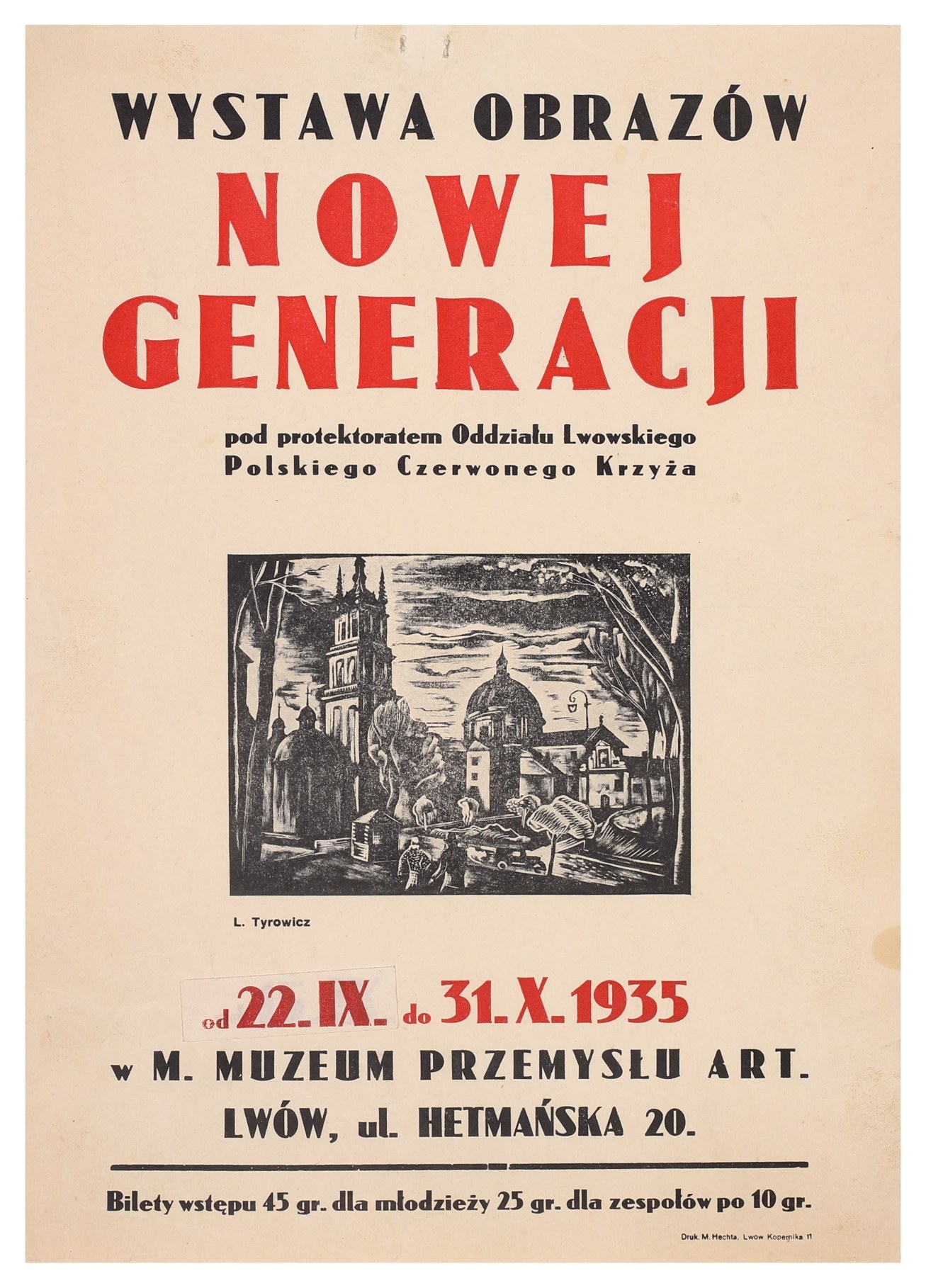 Wystawa obrazów Nowej Generacji pod protektoratem Oddziału Lwowskiego Polskiego Czerwonego Krzyża. Od 22.IX. do 31.X. 1935 w M. Muzeum Przemysłu Art. Lwów, ul. Hetmańska 20. […] Druk. M. Hechta, Lwów Kopernika 11.