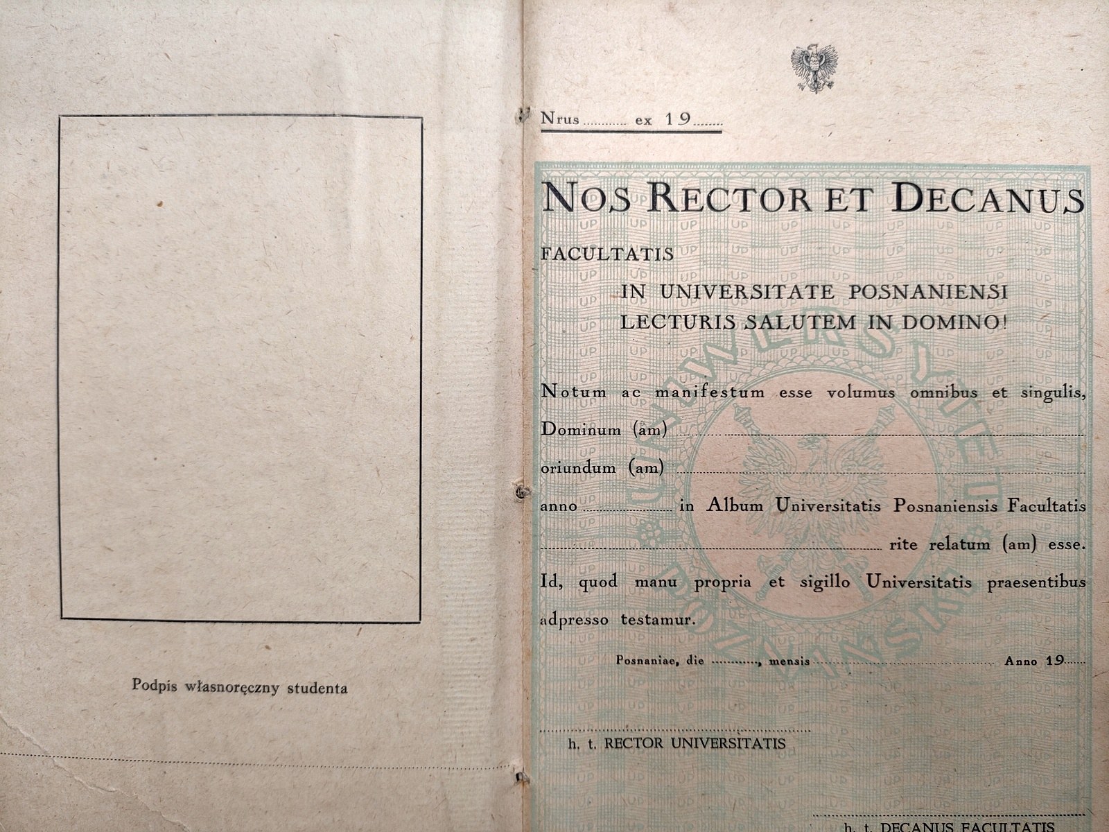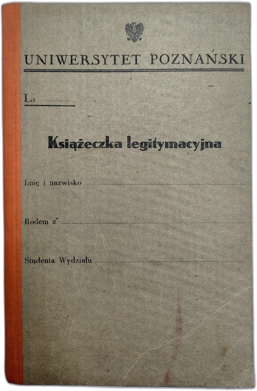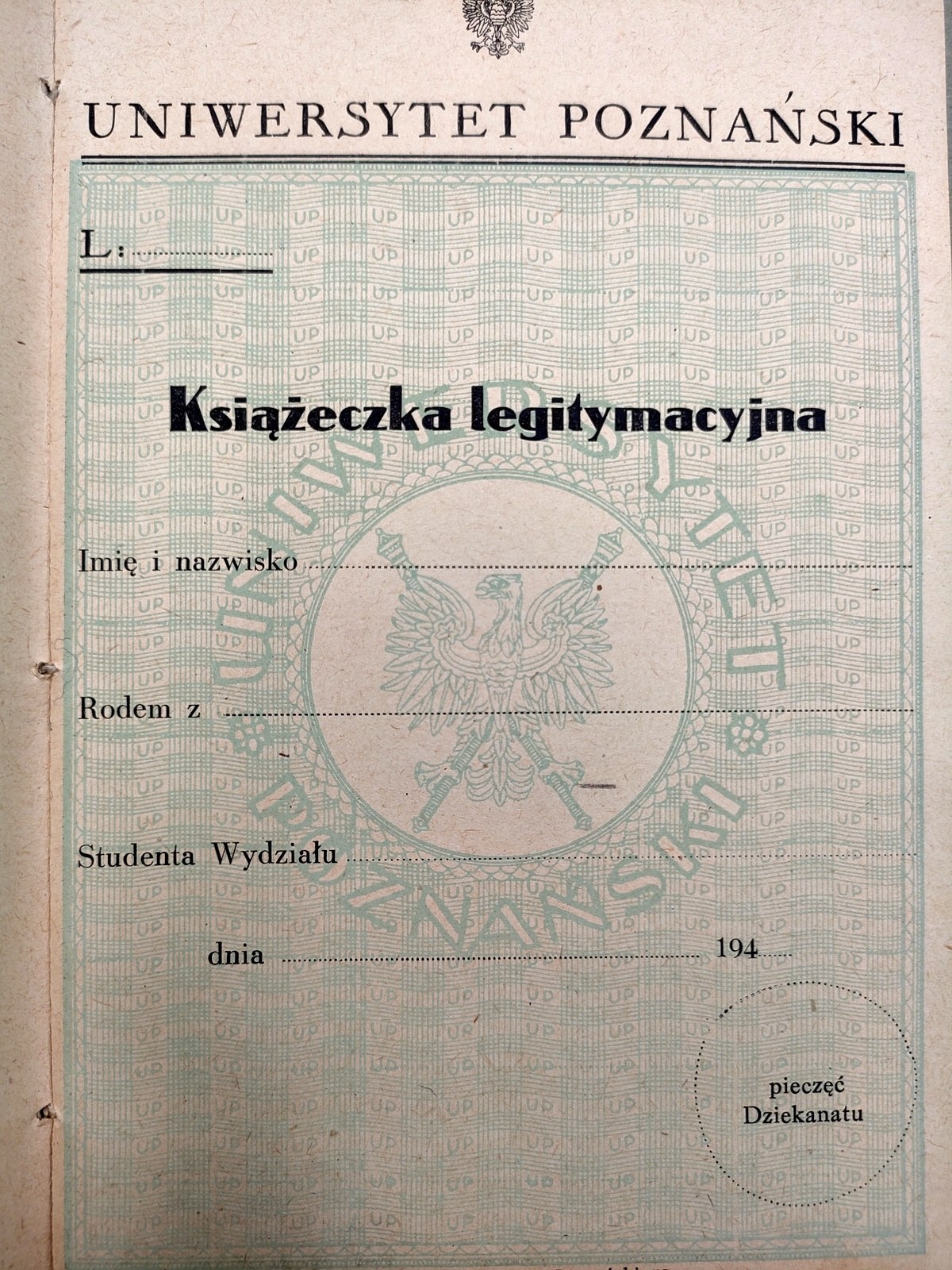 Uniwersytet Poznański - niezapisany, czysty indeks - książka legitymacyjna [ lata 40 XX wieku]