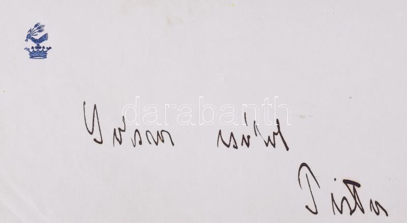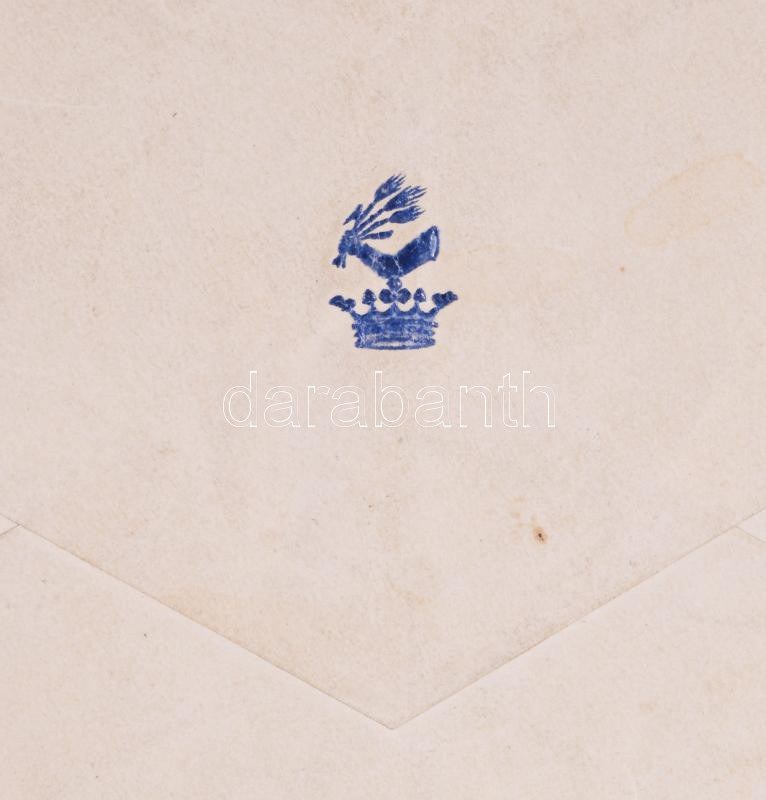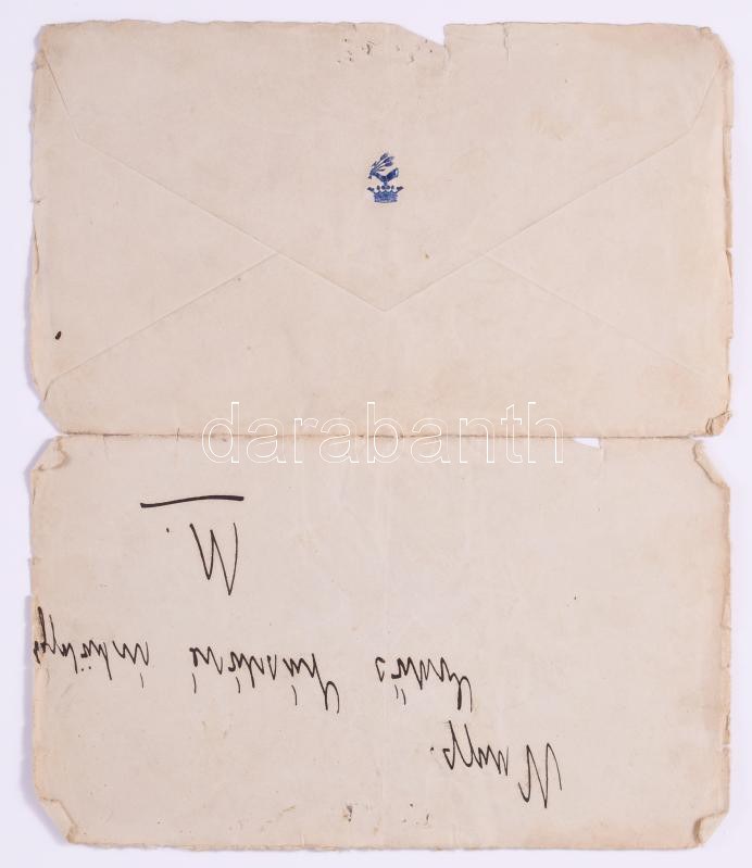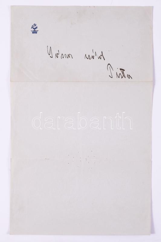 Vitéz nagybányai Horthy István (1904-1942) kormányzóhelyettes, repülő főhadnagy, Horthy Miklós kormányzó fiának monogramos zsebkendője, hozzá címeres levélpapírra írt üdvözletével, "Pista" aláírással, valamint saját kezűleg címzett borítékkal. A zsebkendőn kisebb sérülésekkel, mérete: 42x40 cm