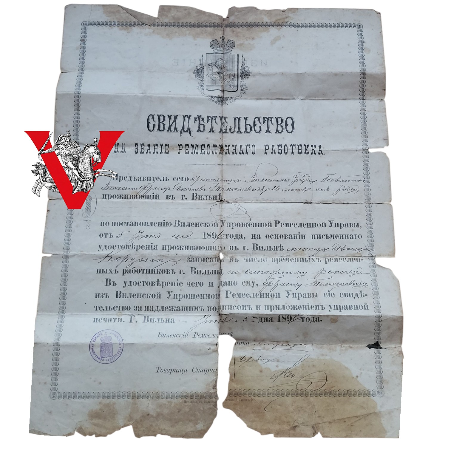 Posiadacz niniejszego, mieszczanin wileński, członek cechu ślusarzy