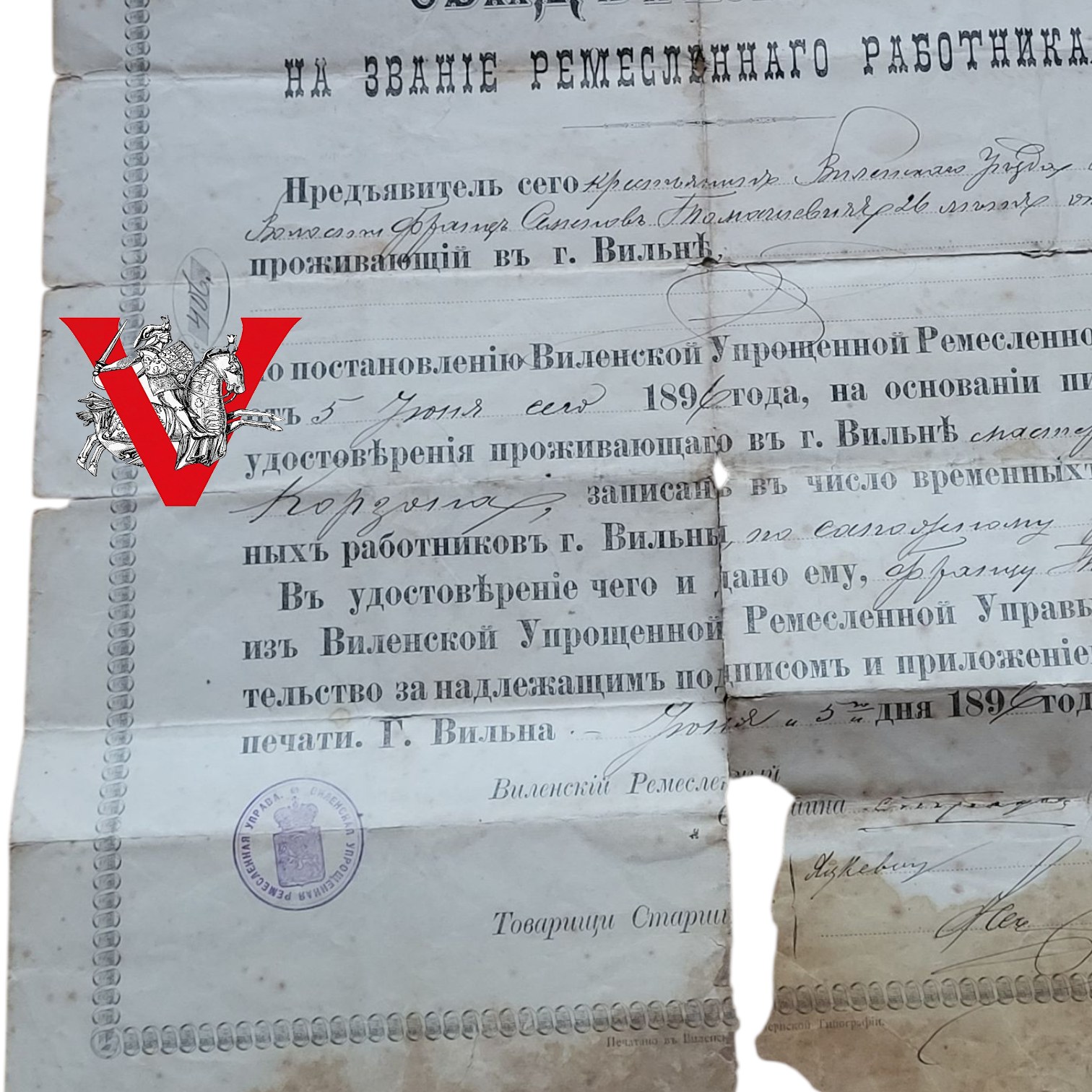 na mocy postanowienia Wileńskiej Uproszczonej Rzemieślniczej Rady