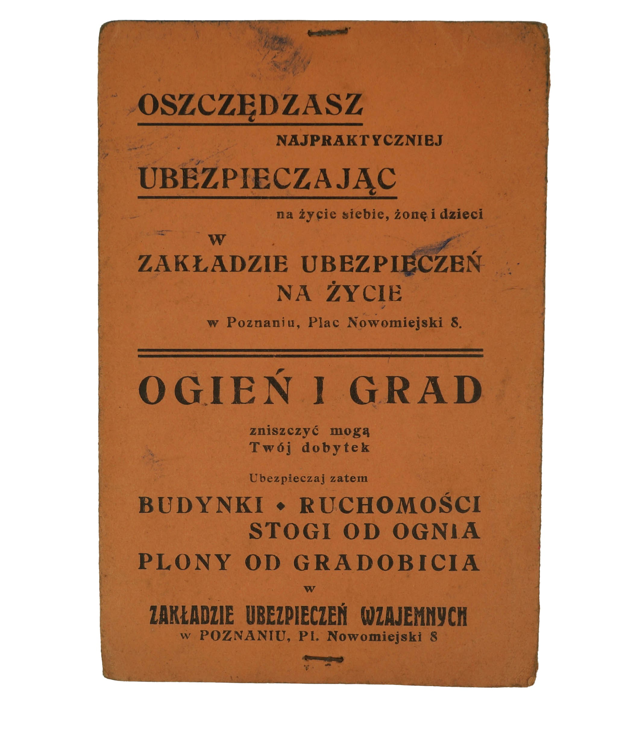 Zakład Ubezpieczeń na Życie w Poznaniu DOWÓD UBEZPIECZENIA ŻYCIA 31 sierpnia 1935r.