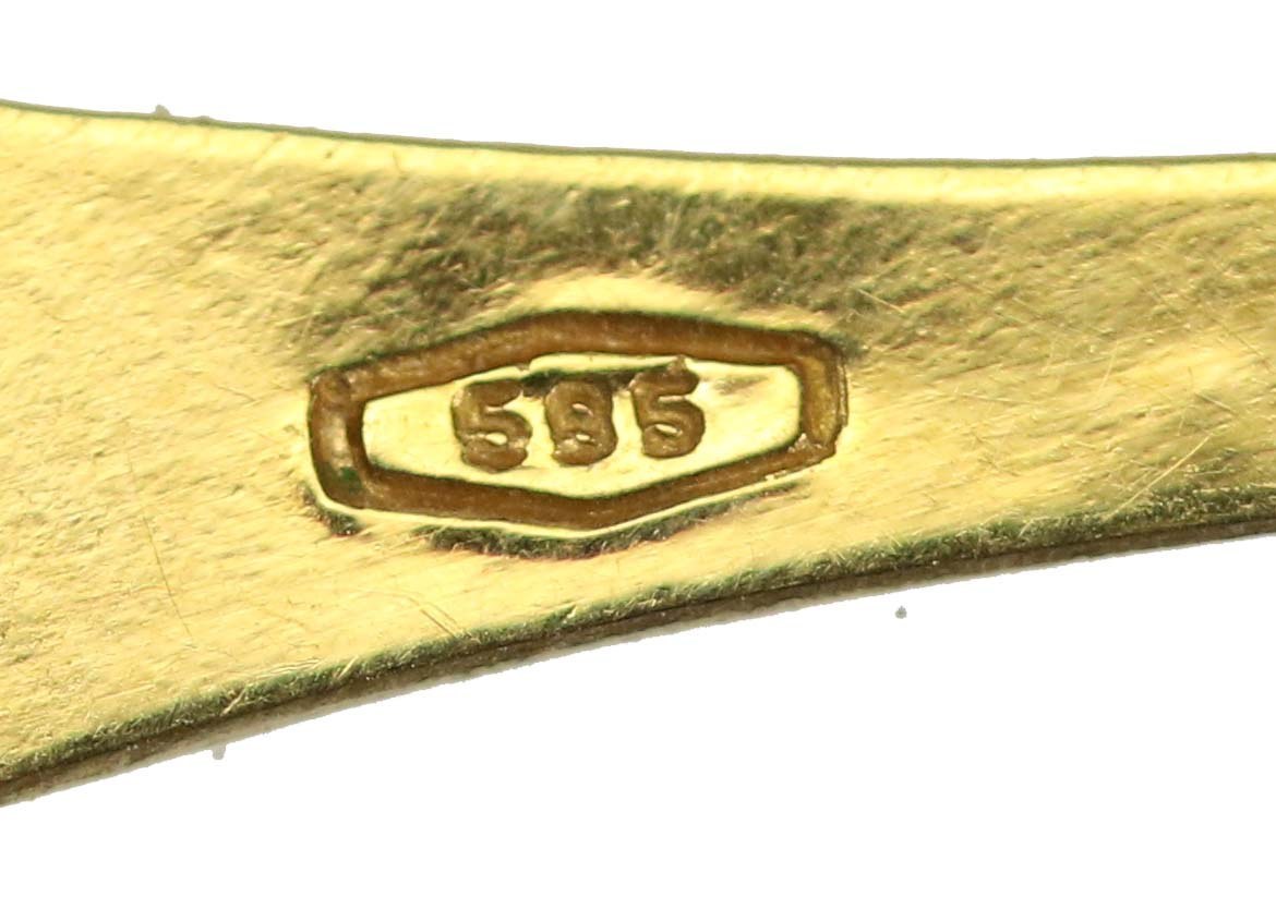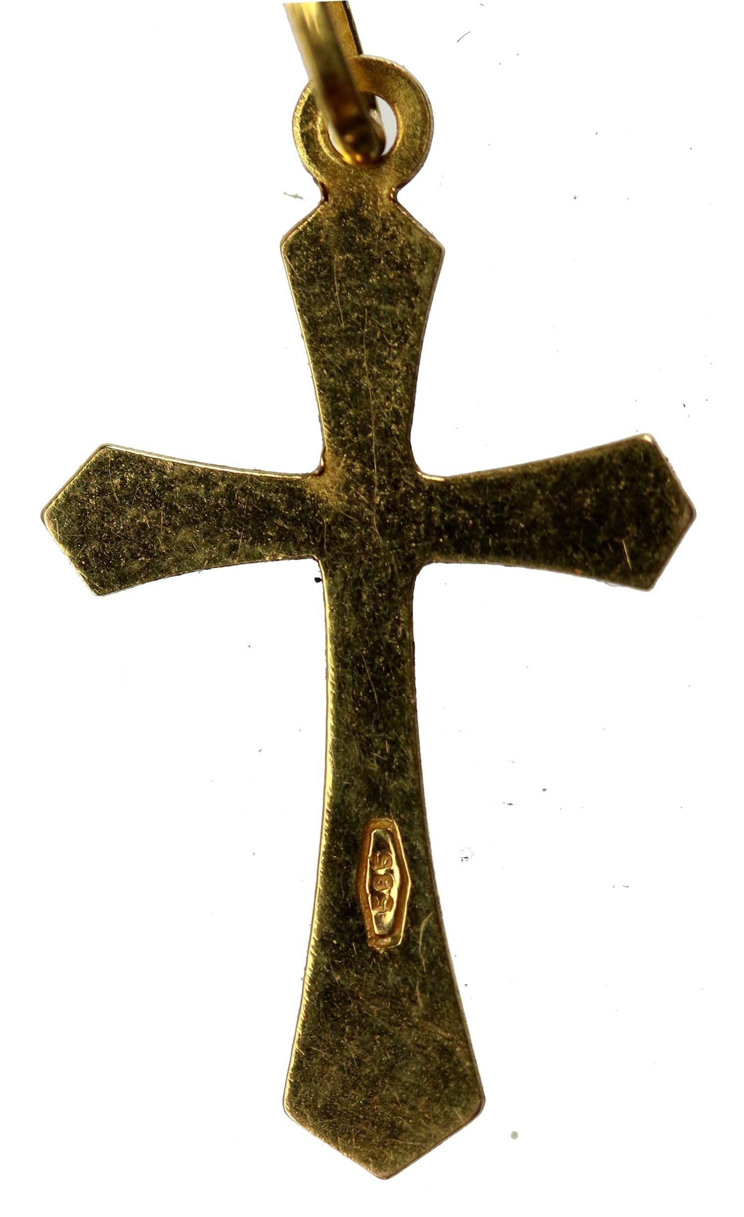 Zawieszka krzyżyk. Złoto, próba 585. Waga 0,41 g. Wym. 22 x 13 mm.