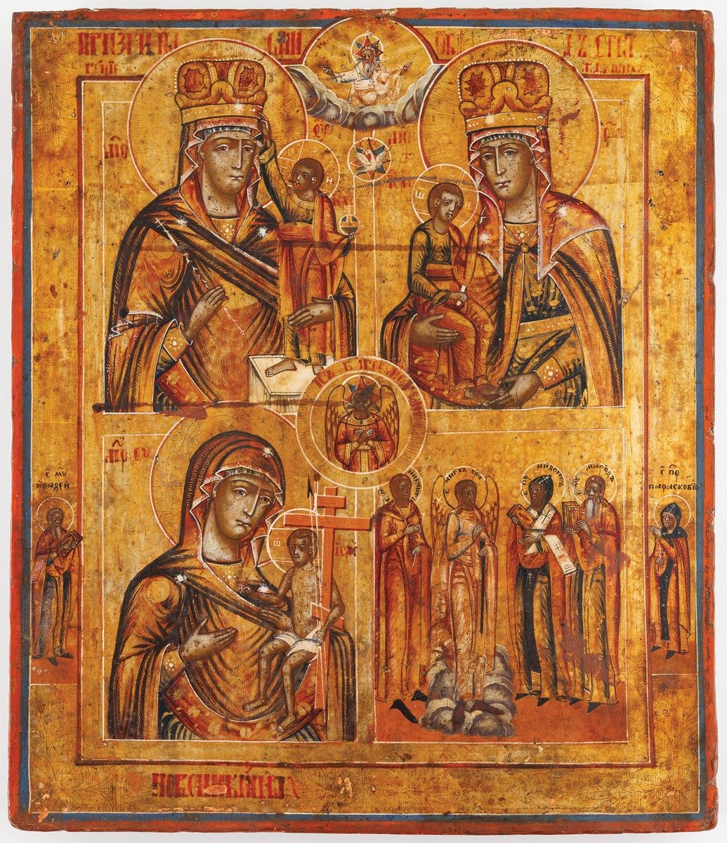 Ikona Matki Bożej Przebłyski Pokory ( Призри на смирение); Ikona Matki Bożej; Ikona Matki Bożej Nowonikitska; czworo świętych
