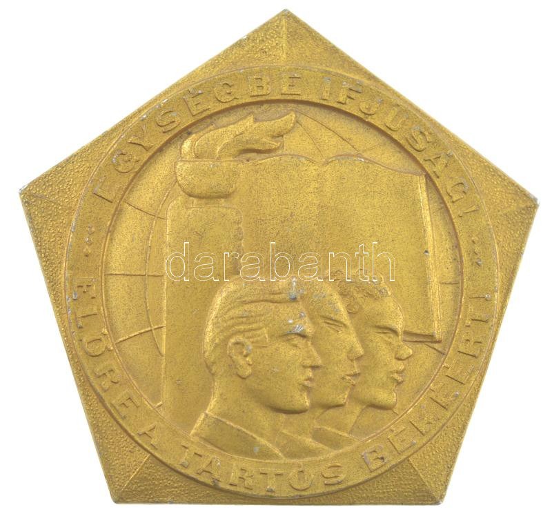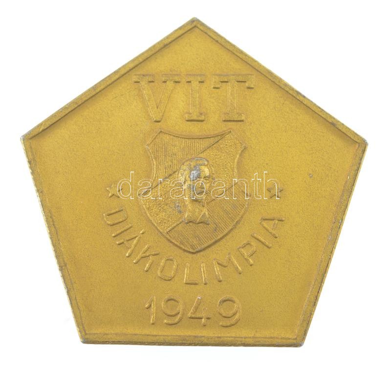 1949. "VIT Diákolimpia 1949 / Egységbe Ifjúság! Előre a tartós békéért!" alumínium emlékplakett (56x54mm) T...