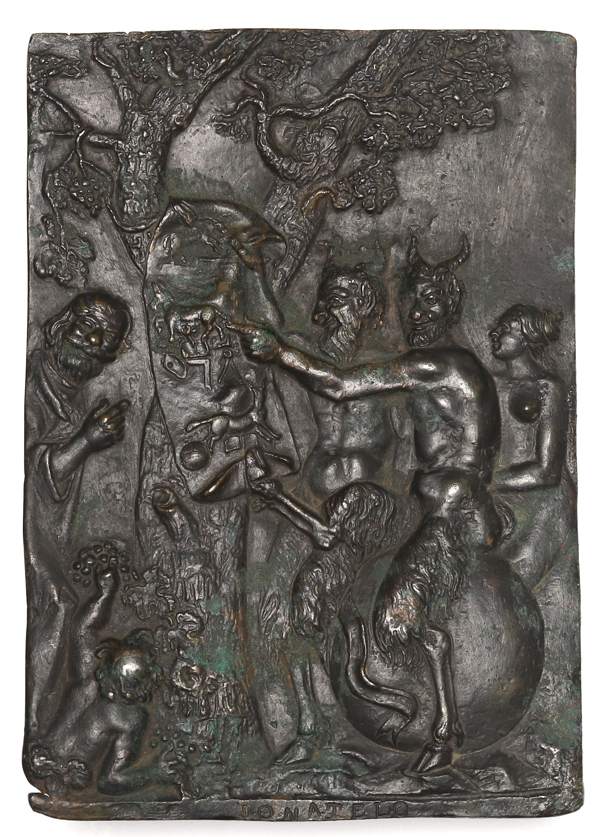 Plakieta odlana w żeliwie na podstawie egzemplarzy brązowych przypisywanych produkcji XVII lub XVIII wiecznej.