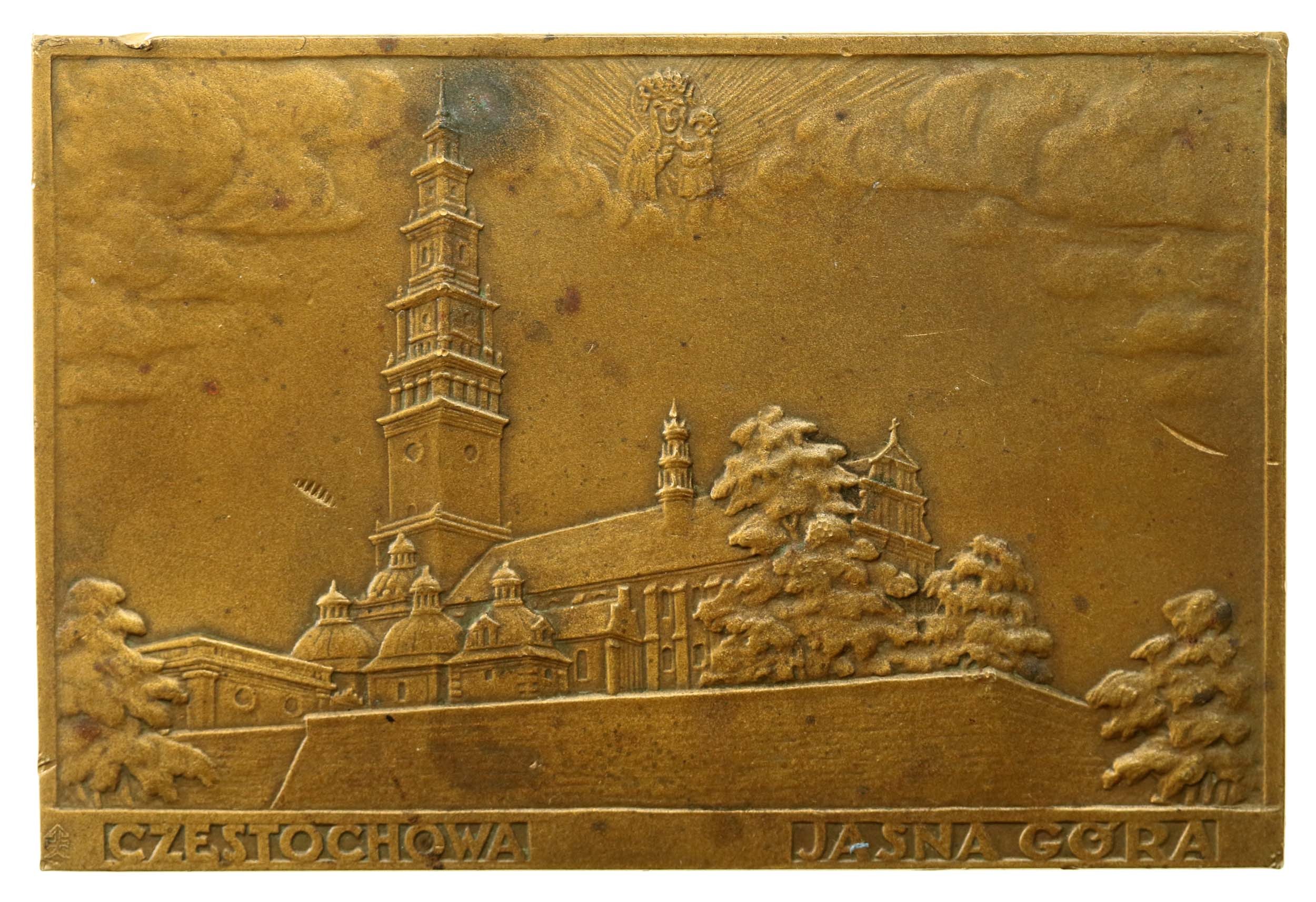 II RP, Plakieta Częstochowa-Jasna Góra. Mennica Państwowa. Projekt Stefan Koźbielewski. Sygnowana na awersie. Nakład około 140 sztuk. Brąz. Wym. 91 x 61 mm. Stan zachowania dobry. Literatura: Strzałkowski 34