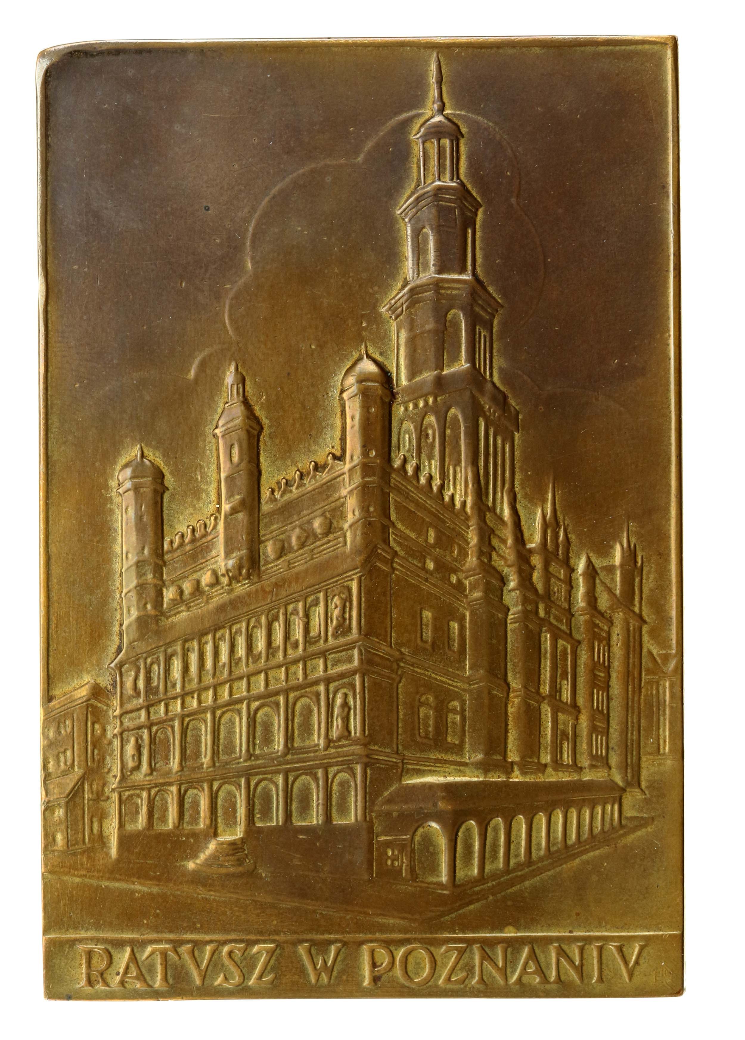 II RP, Plakieta Ratusz w Poznaniu. Mennica Państwowa, Nakład ponad 180 sztuk. Sygnowana na rewersie. Brąz. Wym. 91 x 61 mm. Stan zachowania bardzo dobry. Literatura: Strzałkowski 25b