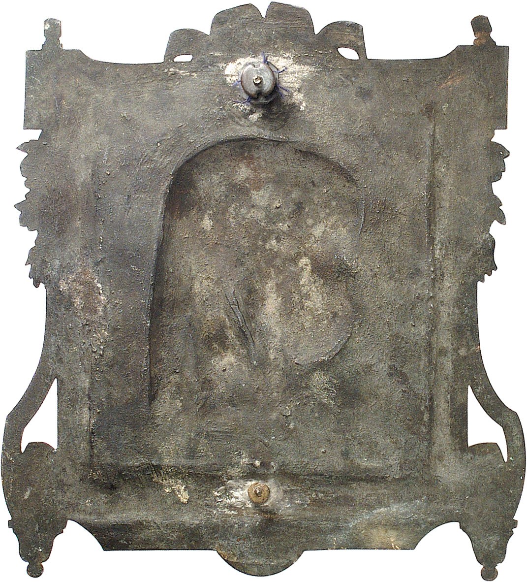 Avec une patine sombre. Pattes de fixation au revers. Superbe.