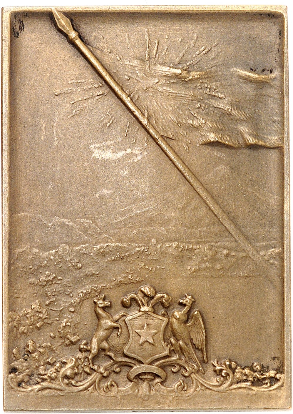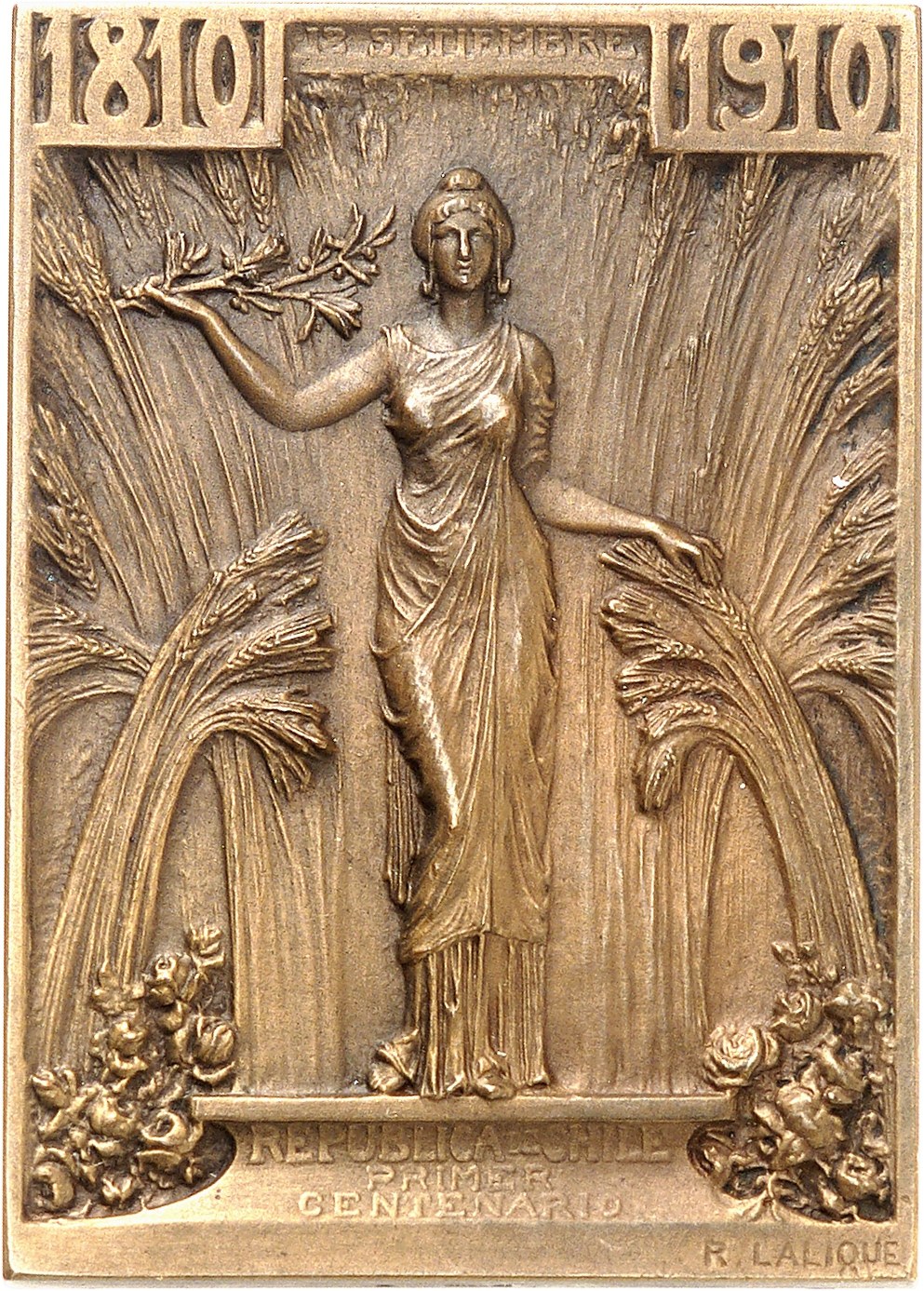République. Plaque, centenaire de l’indépendance du Chili, par R. Lalique 1910, Paris.