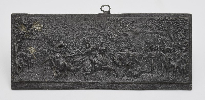 cyna, odlew; 2 plakiety o wym. 8,5 x 14 cm; 2 plakiety 8,5 x 19,5 cm; na trzech z tyłu wybity znak odlewni: „S. K. HELLICH / WARSZAWA”.