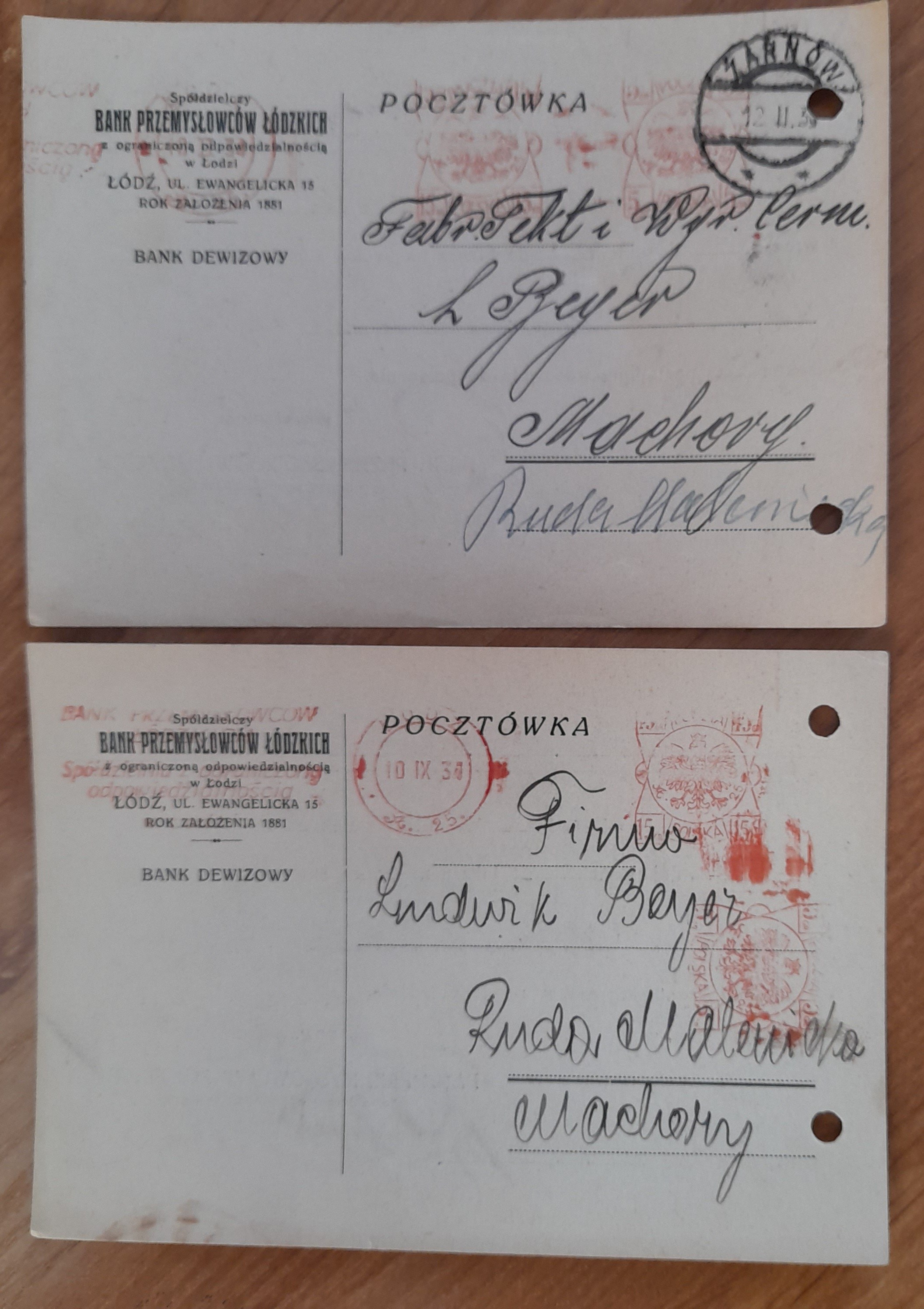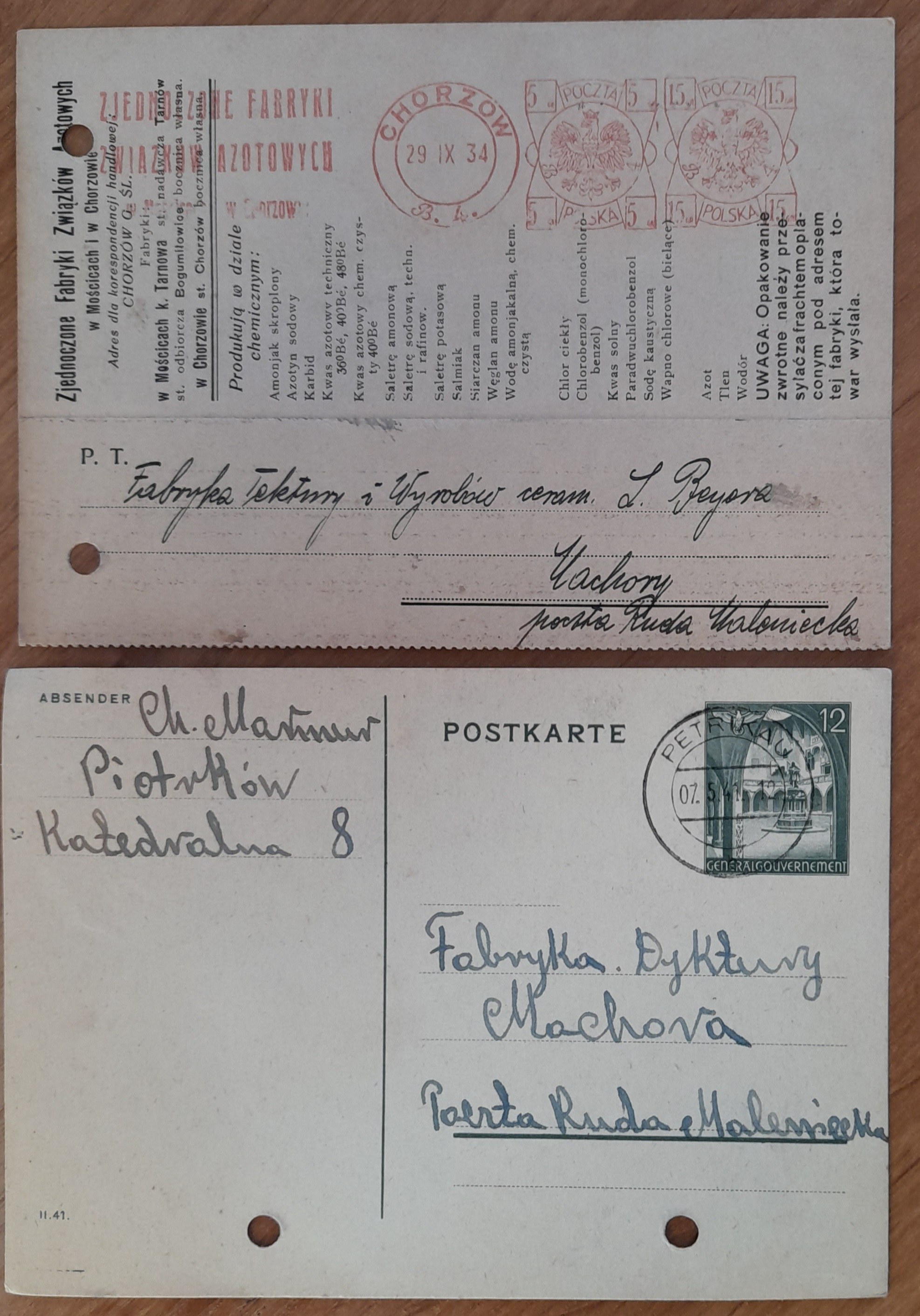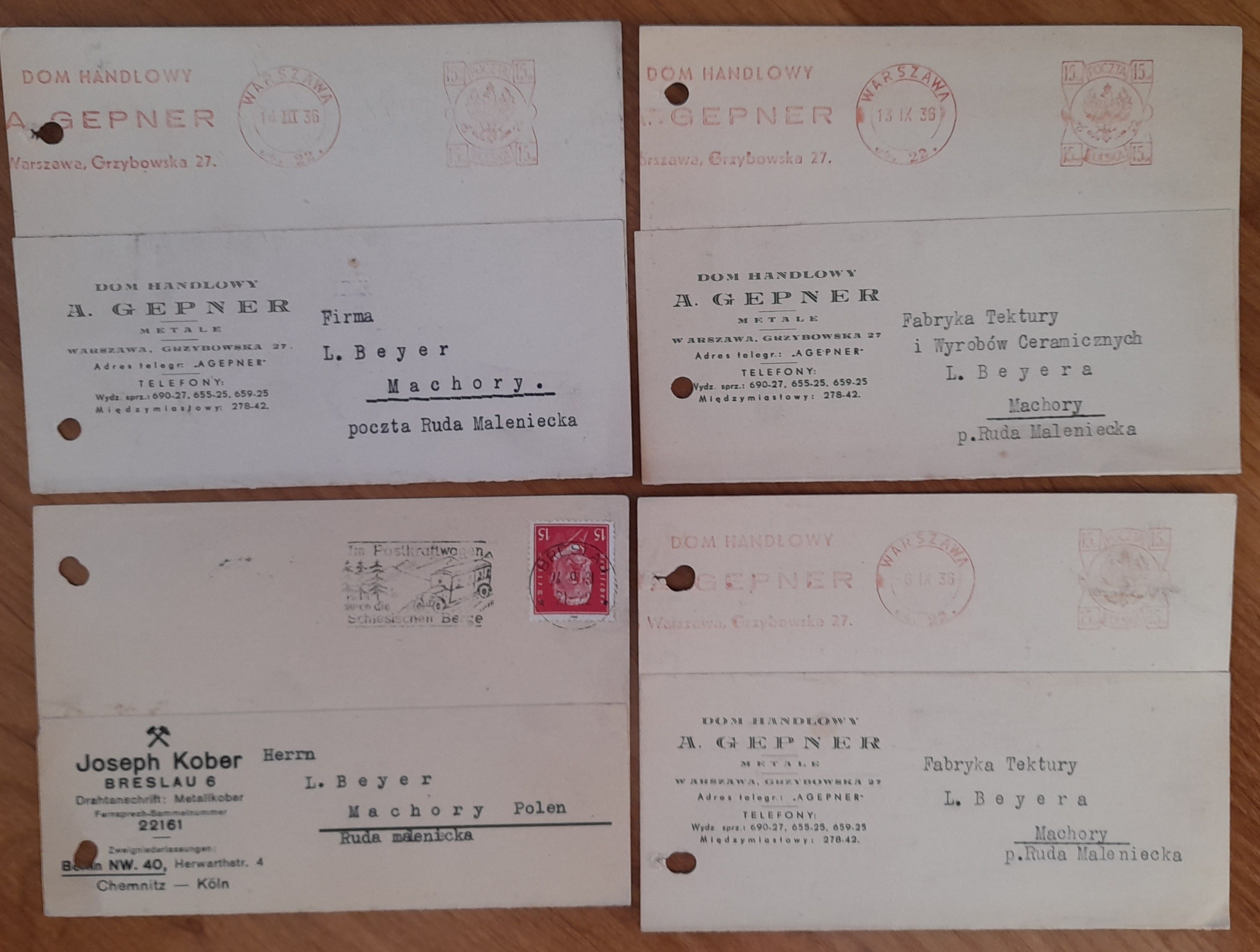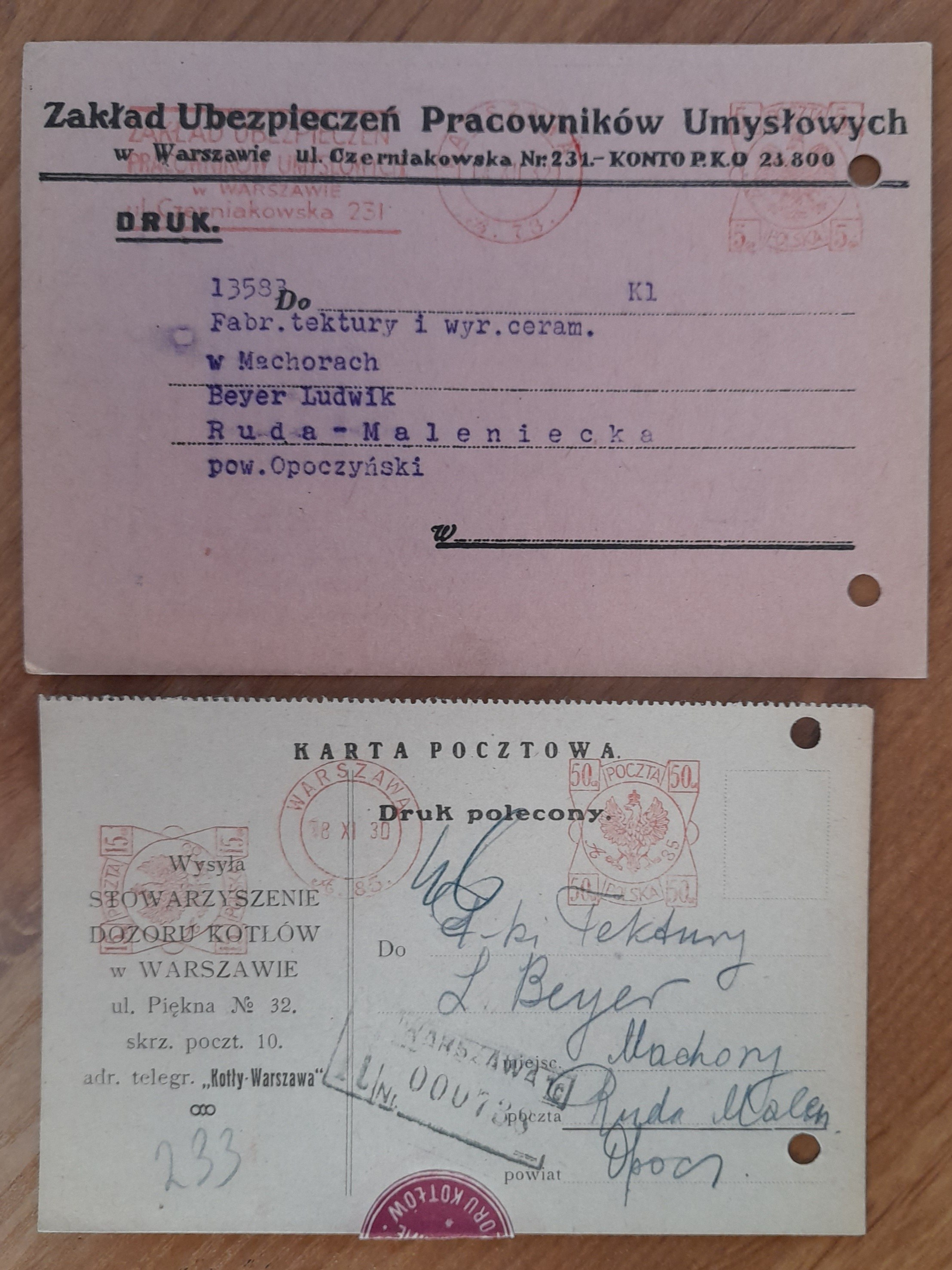 13.kart pocztowych kierowanych do Fabryki Tektury w Machorach.k.Końskich