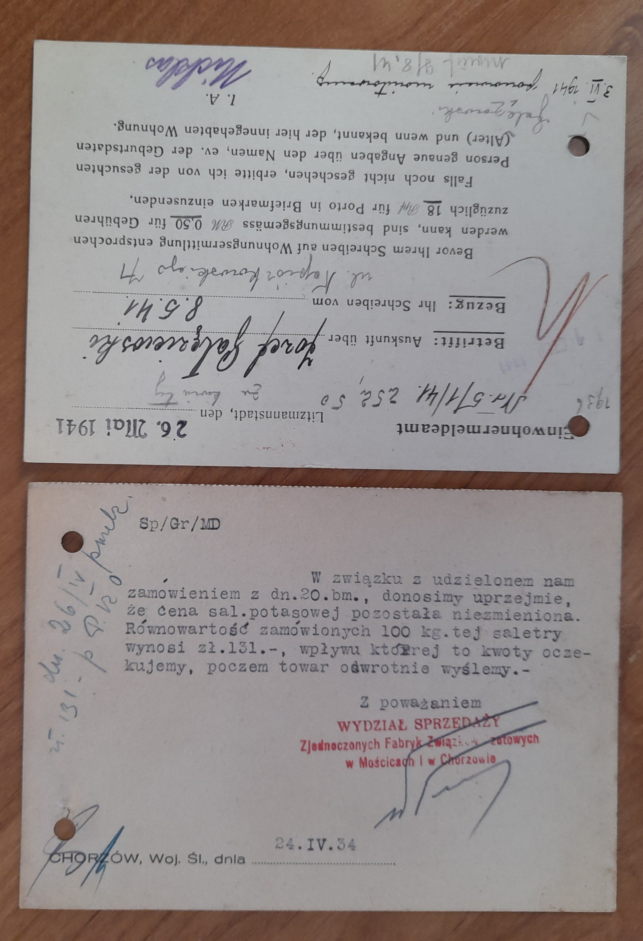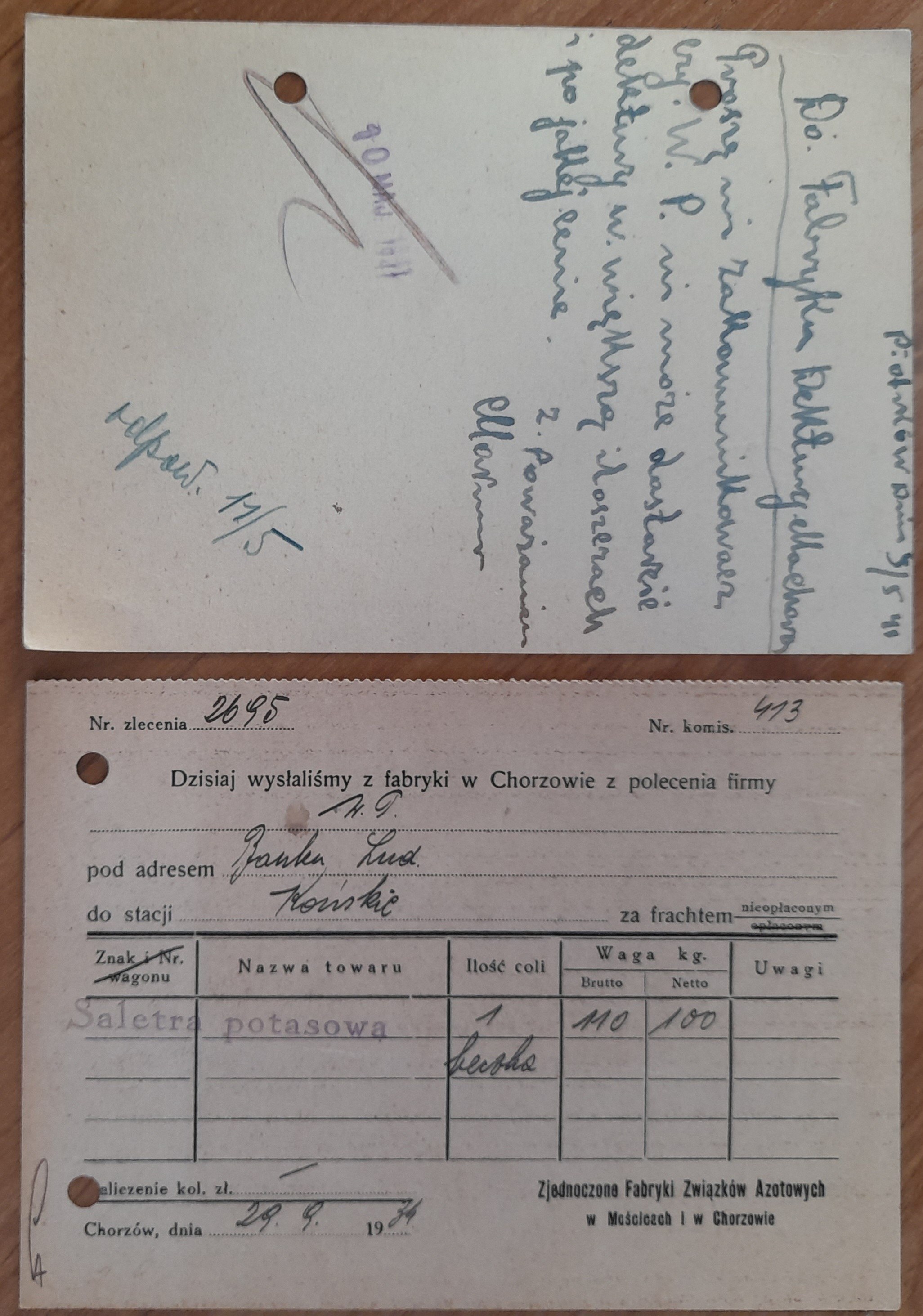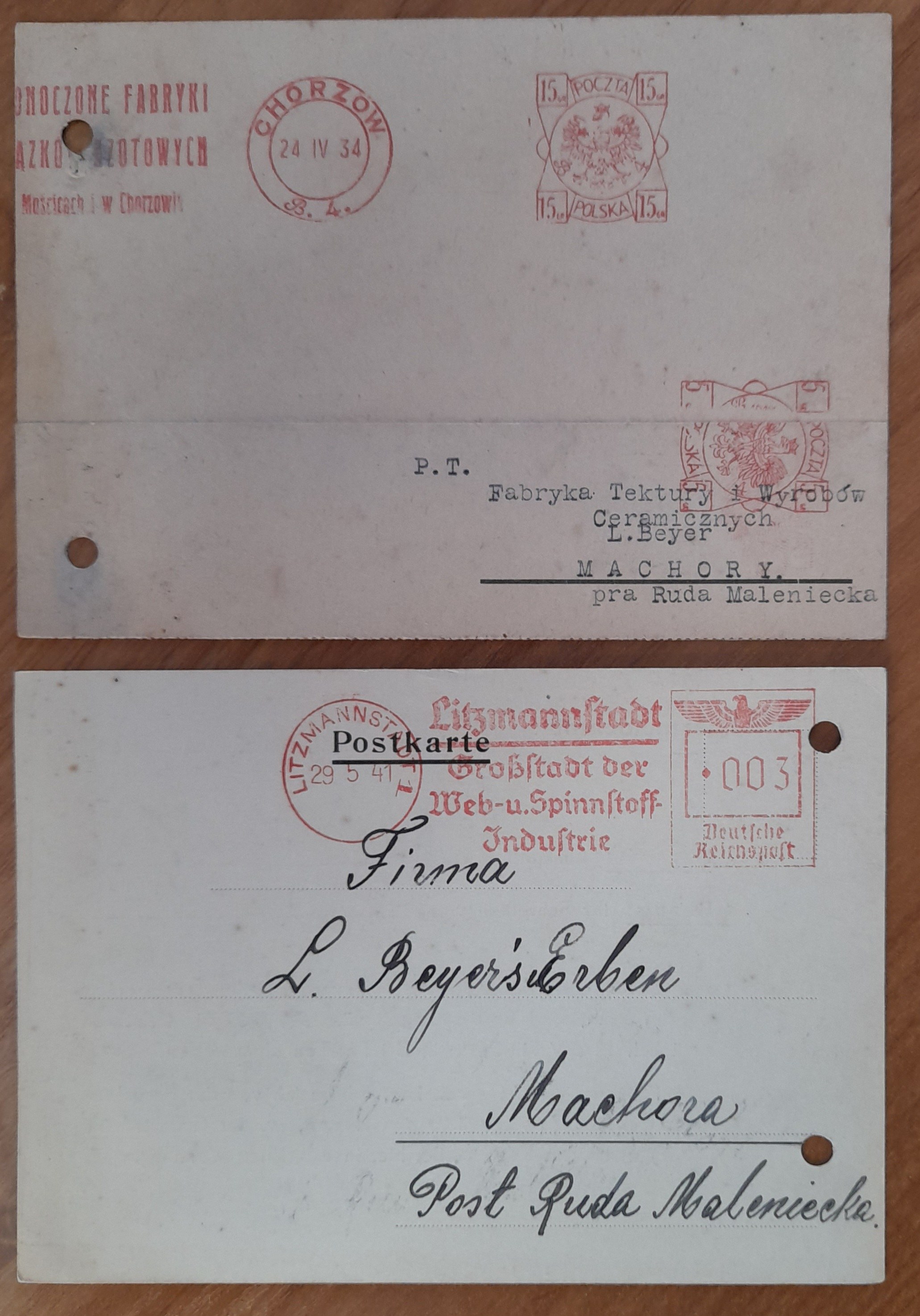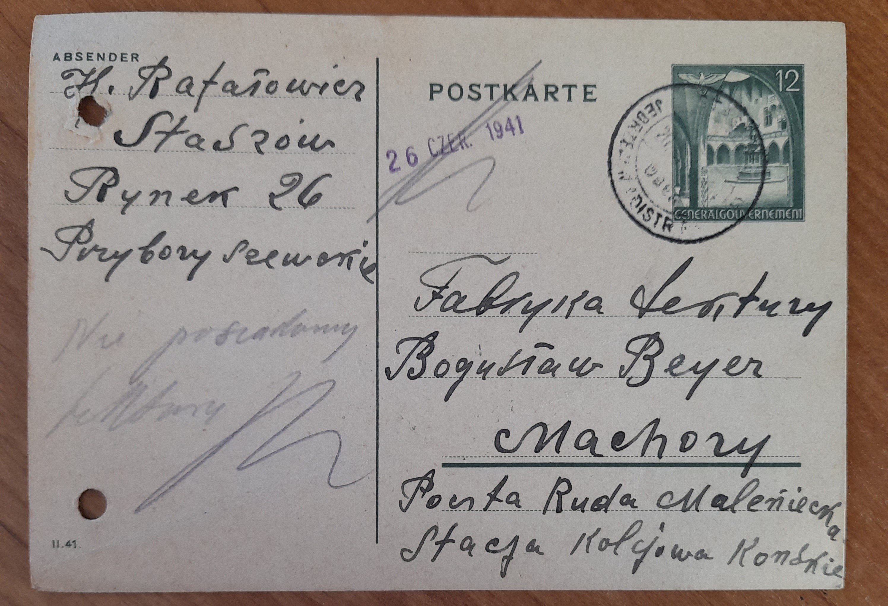 13.kart pocztowych kierowanych do Fabryki Tektury w Machorach.k.Końskich