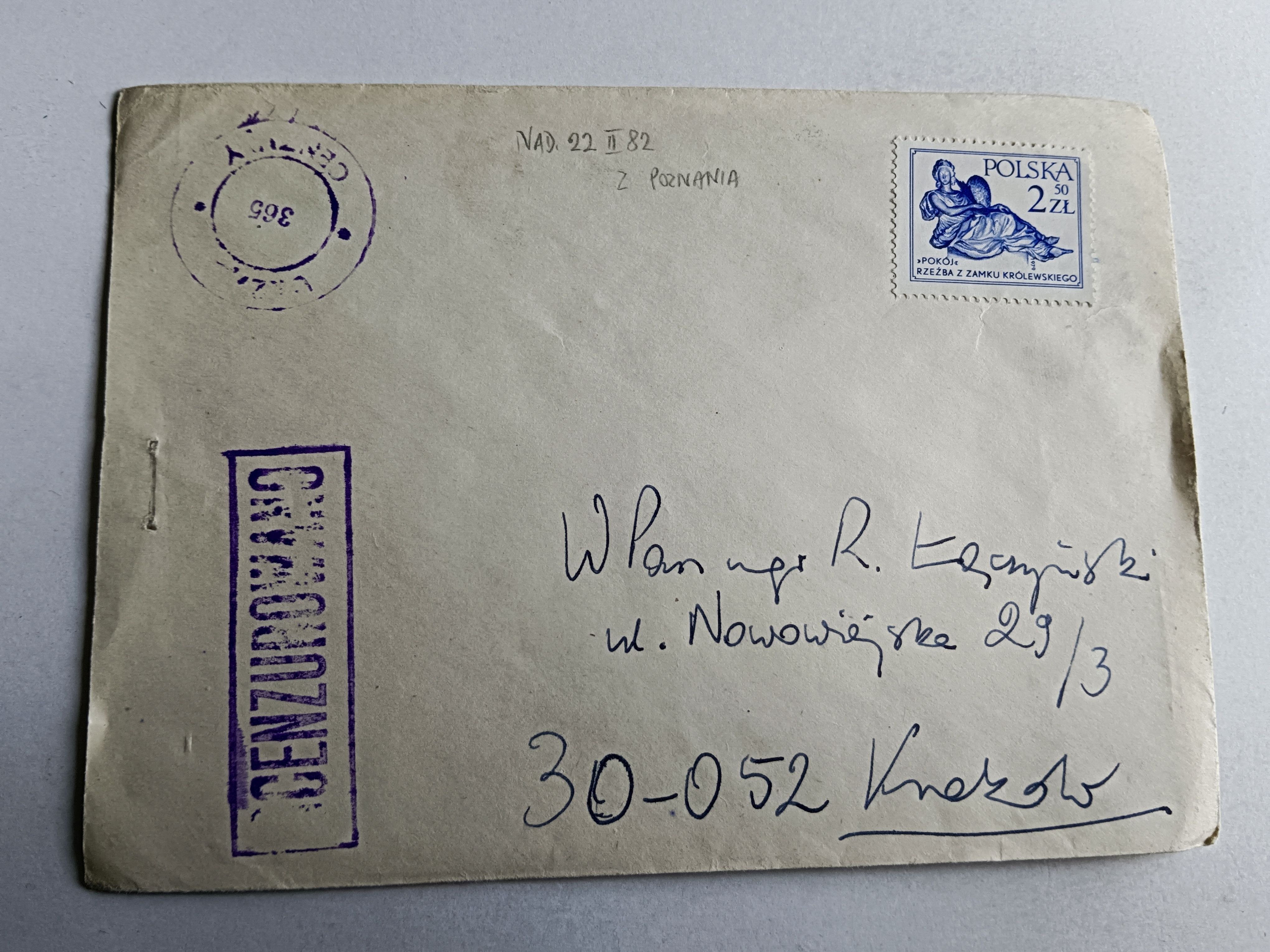 KOPERTA PRL CENZURA STAN WOJENNY KRAKÓW POZNAŃ, ZNACZEK
