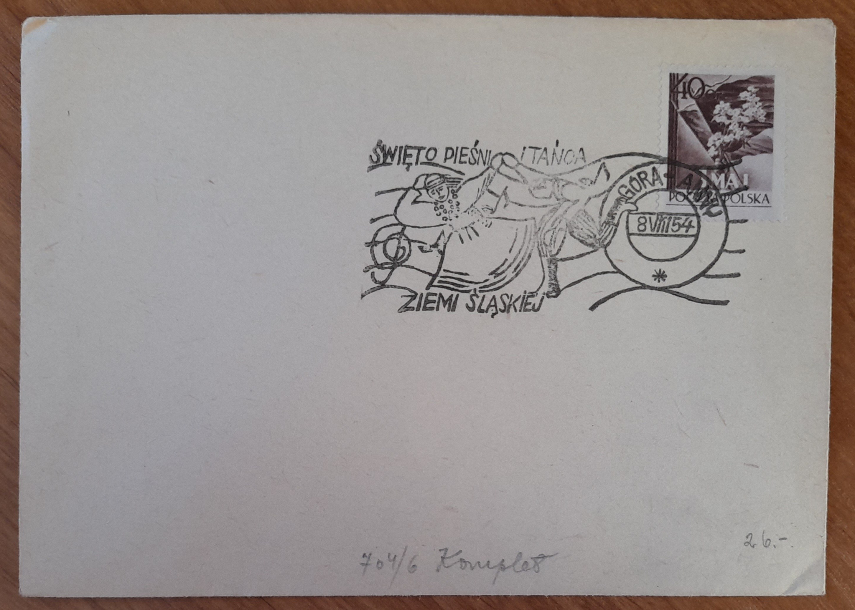 Stempel Święto Pieśni i Tańca Ziemi Śląskiej 8.08.1954 r.