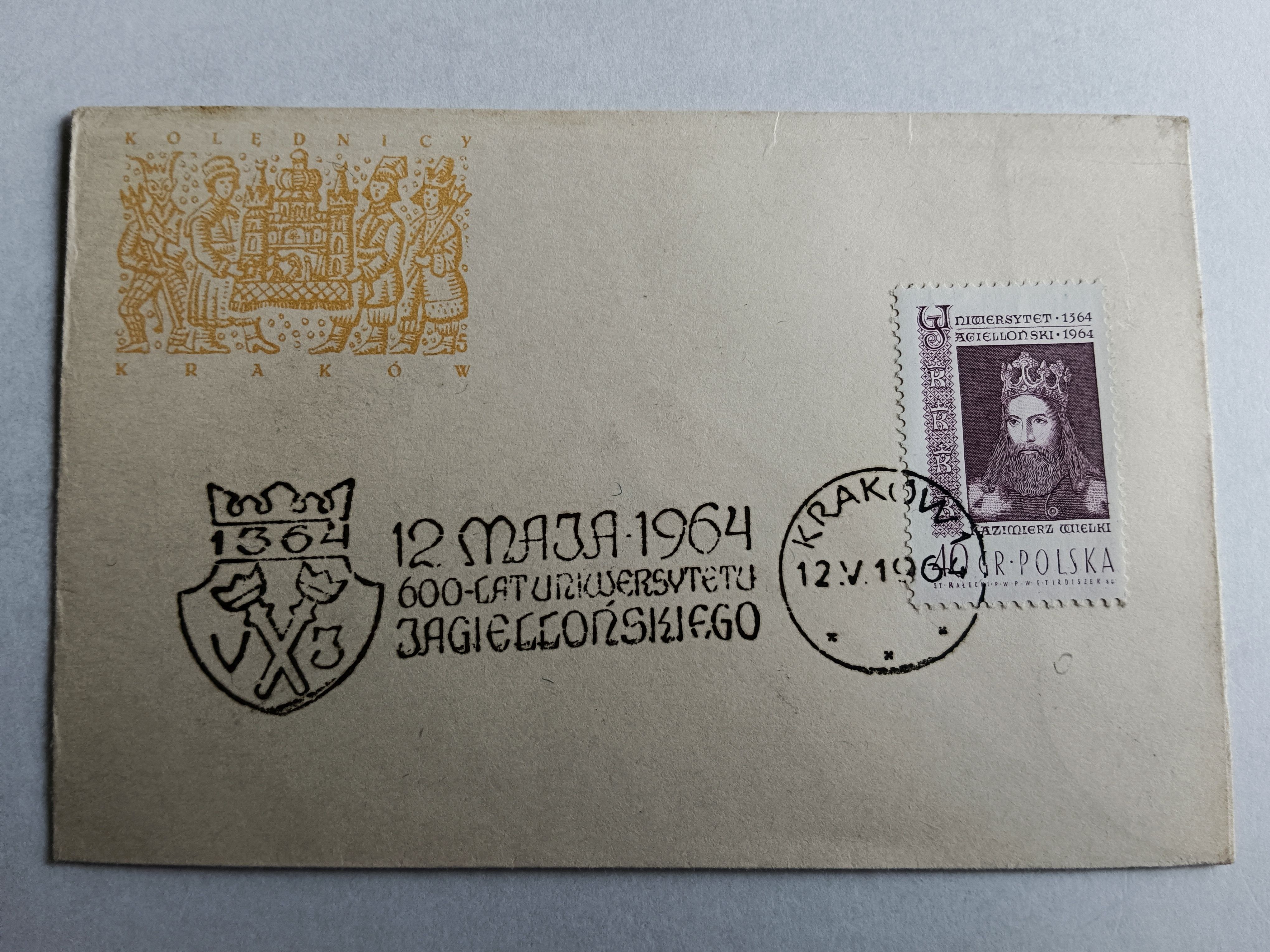 KOPERTA, ZNACZEK, STEMPEL KRAKÓW UNIWERSYTET JAGIELLOŃSKI 1964 R