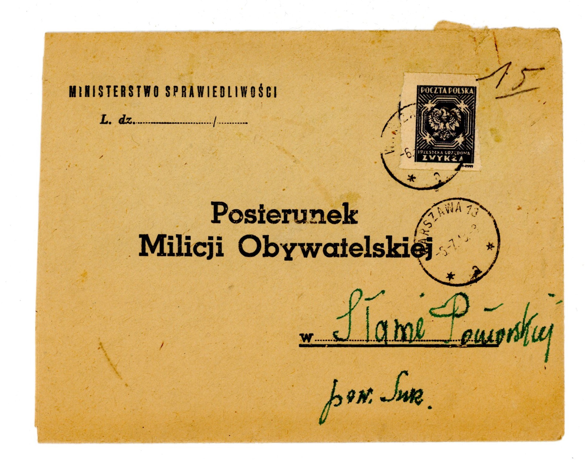 List urzędowy z Warszawa do Posterunku Milicji Obywatelskiej, 1949