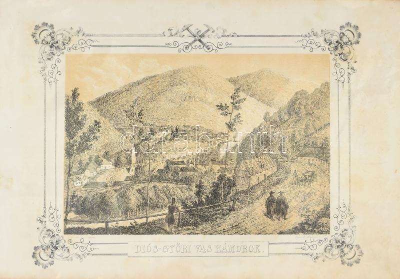 1846 Diós-Győri Vas hámorok. Litográfia, megjelent Vachot Imre: Magyarföld és népei, Pest 1846. 20x30 cm Enyhén foltos