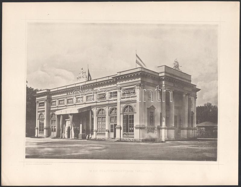 1885 Budapesti, Országos Általános Kiállítás, M. Kir. Pénzügyminisztérium pavilonja, nyomat, 26×33 cm