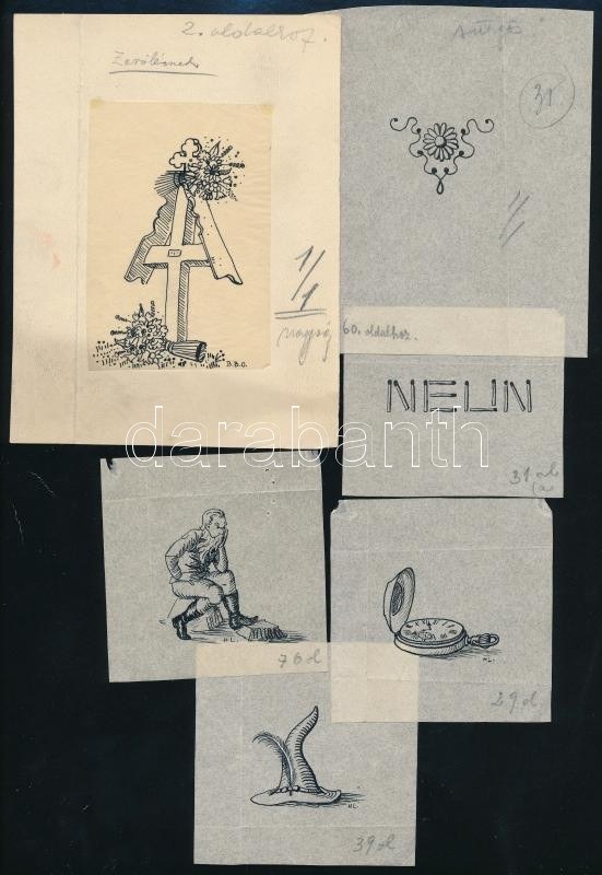 9 db klf illusztráció, különböző jelzésekkel. Tus, papír. 20x12 cm-ig