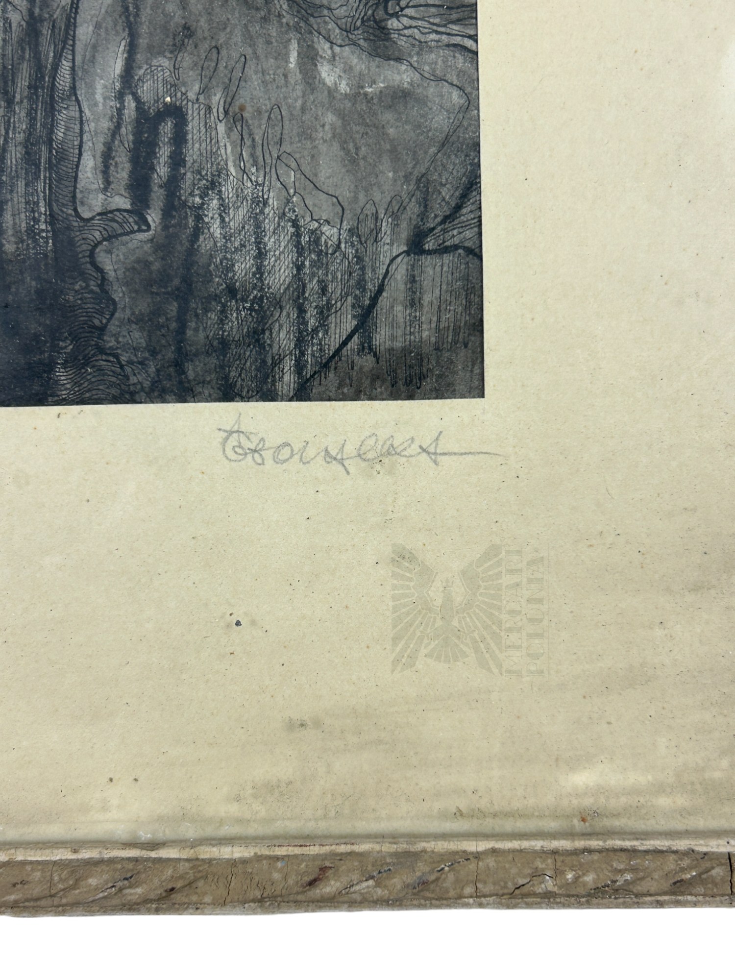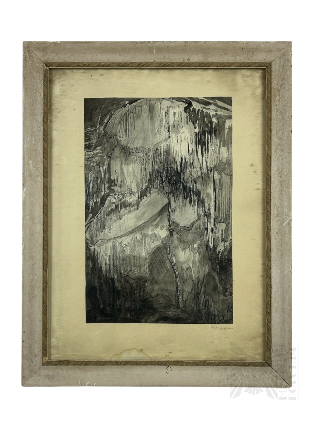 A. Głowacka (?) - Obraz Wnętrz Jaskini Stalagmity i Stalaktyty, Tusz na Papierze