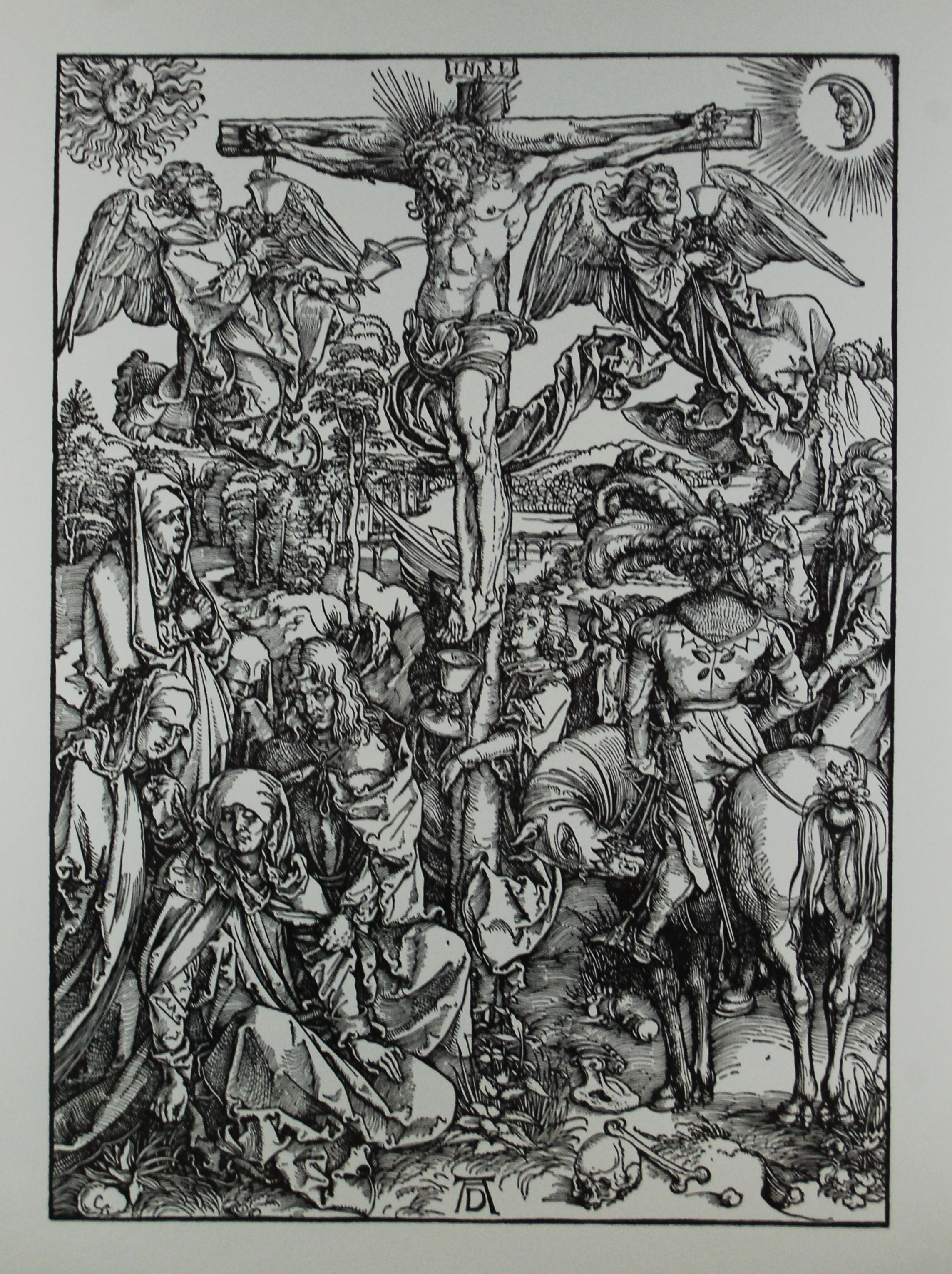 Wydanie z okazji czterysta setnej rocznicy powstania dzieła artysty, ojca drzeworytu i wspaniałego artysty.Wydanie:  Narodowa Drukarnia Niemiecka. 1896. Drzeworyt z serii artysty pt:"Grosse Passion" którą artysta przygotowywał w dwóch epizodach pierwszy  1496-1498 z  równolegle z "Apokalipsą" oraz 1510-1511 .Drzeworyty przygotowane pod okiem  Muzeum w Dürera Norymberdze,na podstawie oryginalnych prac artysty.