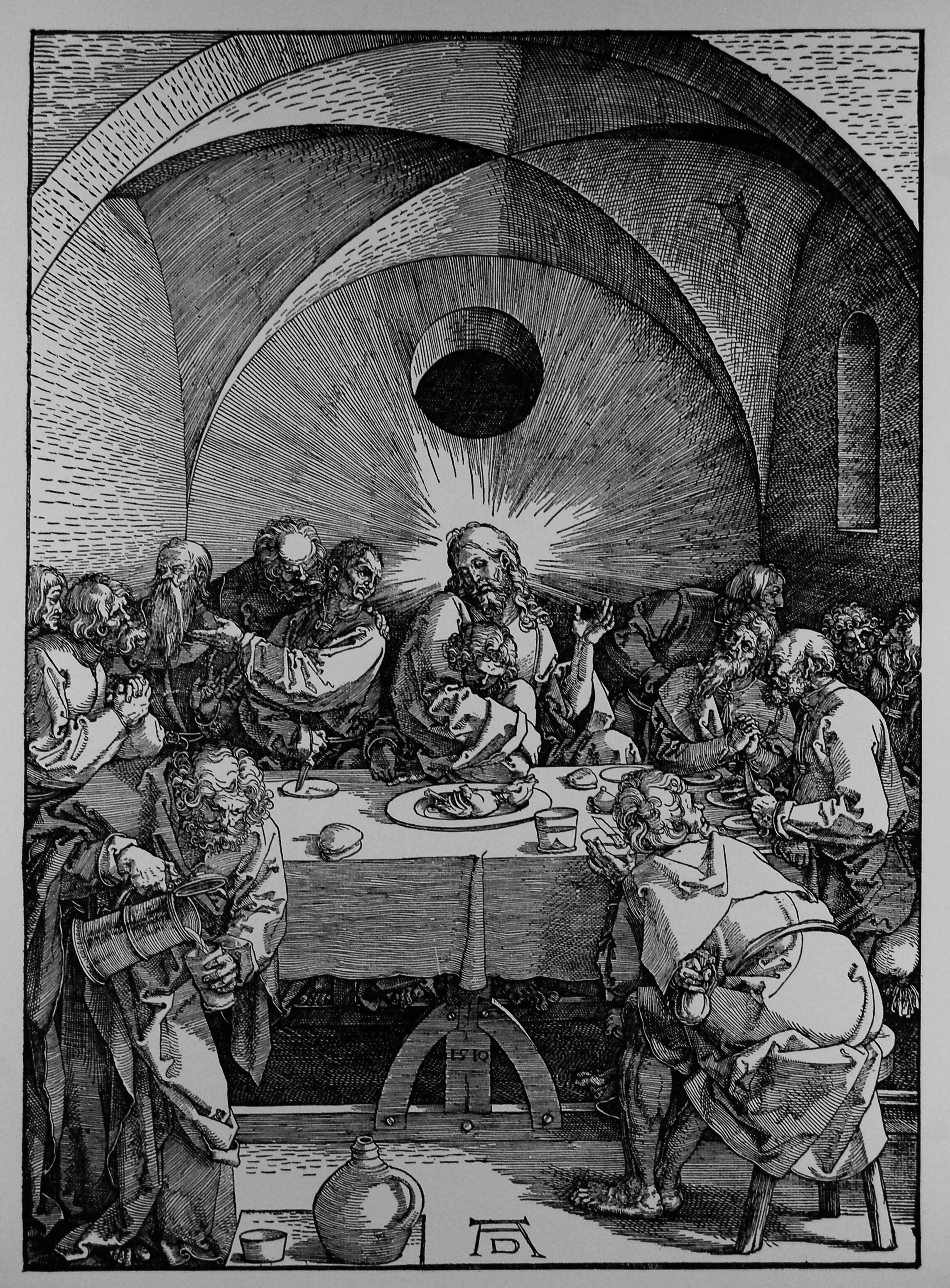 Wydanie z okazji czterysta setnej rocznicy powstania dzieła artysty, ojca drzeworytu i wspaniałego artysty.Wydanie: Narodowa Drukarnia Niemiecka. 1896. Drzeworyt z serii artysty pt:"Grosse Passion" którą artysta przygotowywał w dwóch epizodach pierwszy 1496-1498 z równolegle z "Apokalipsą" oraz 1510-1511 .Drzeworyty przygotowane pod okiem Muzeum Dürera w Norymberdze,na podstawie oryginalnych prac artysty.