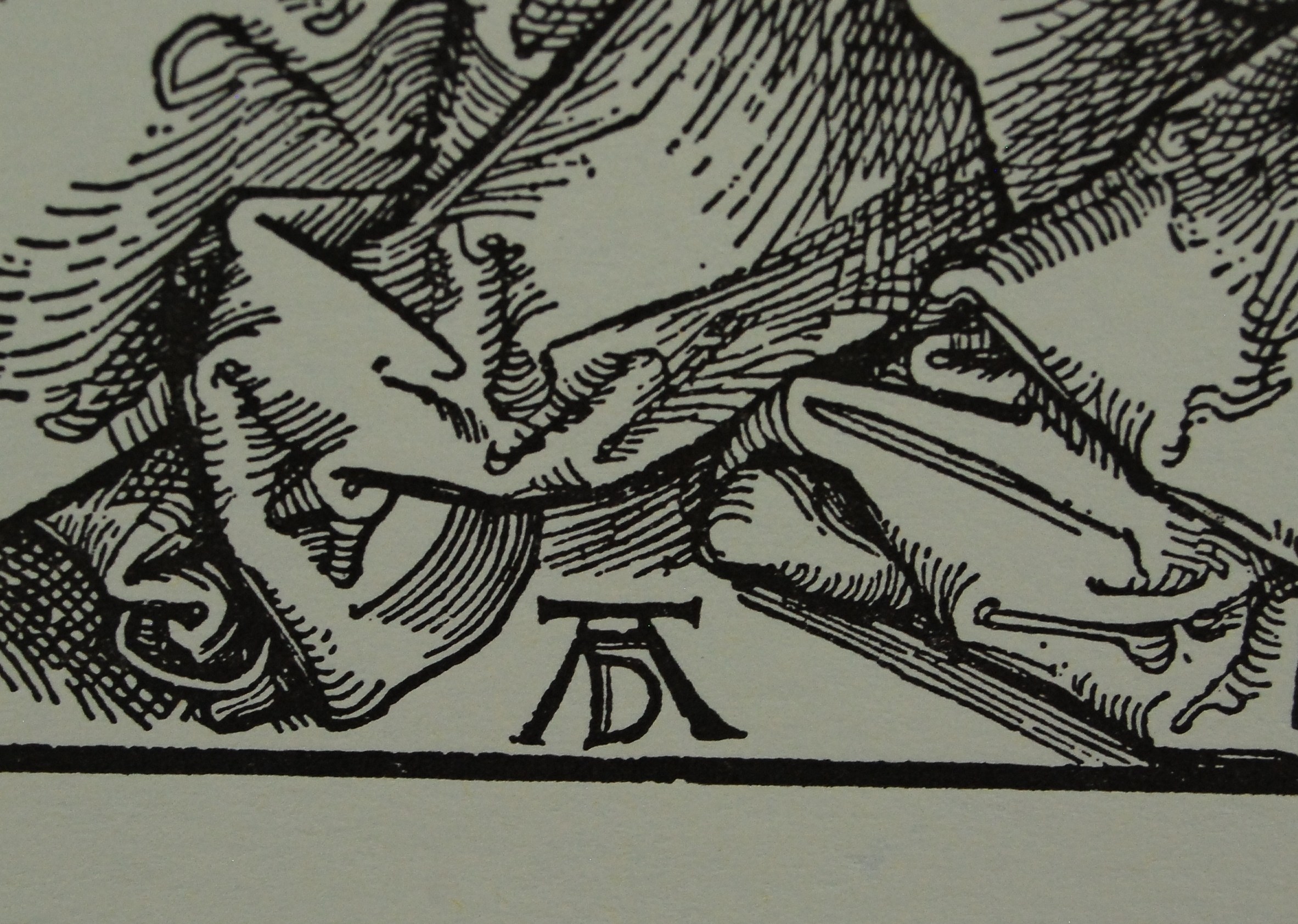 drzeworyt na papierze o wysokiej gramaturze, sygn.w druku:"AD" , 47 x 34 cm.(arkusz),38,4 x 27,9 cm (odcisk klocka), praca nie oprawiona.