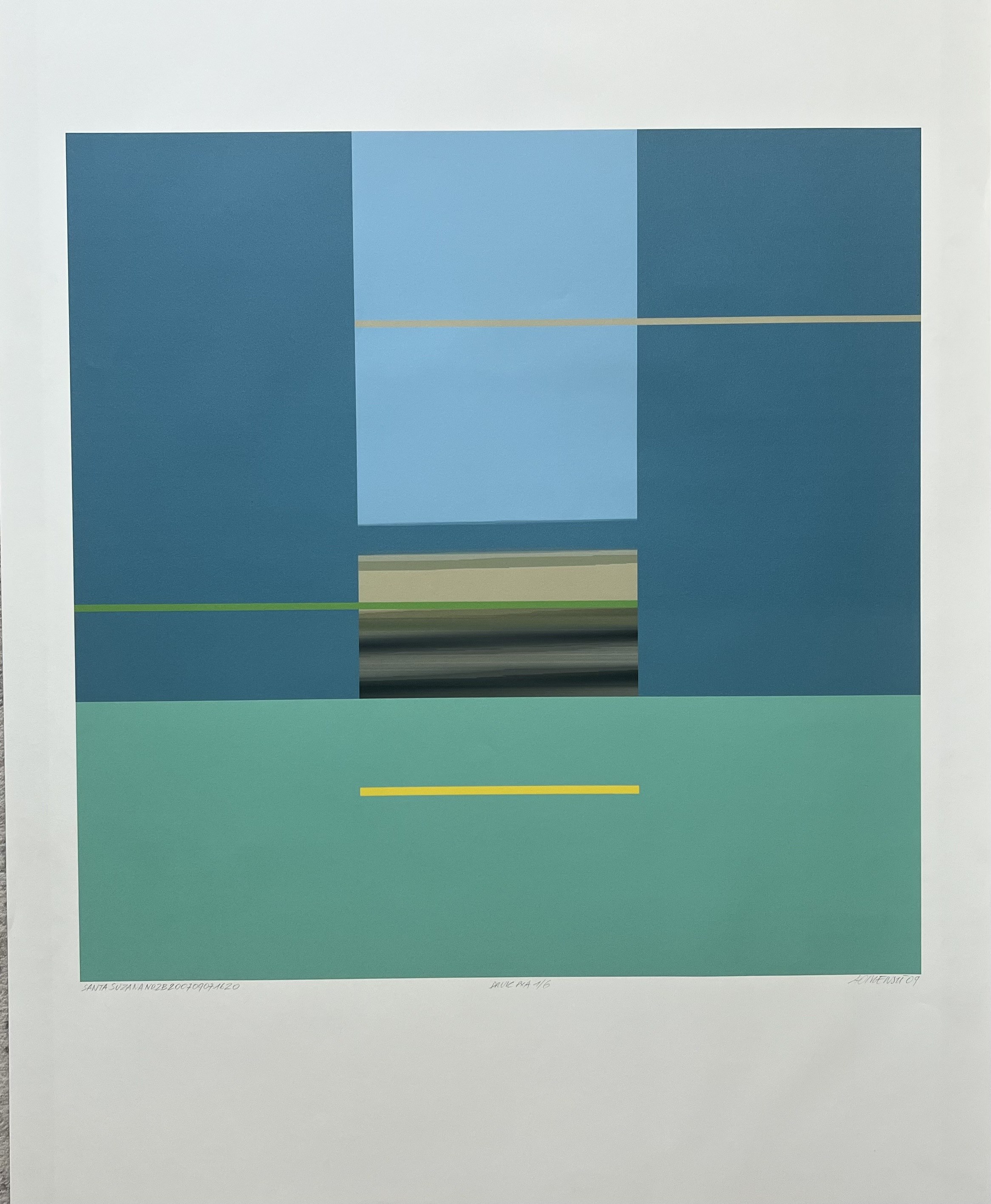 Aleksander Olszewski, z cyklu Autostrady, Hiszpania, Santa Suzana N02B200709071620, druk cyfrowy PxA 1/6, 100x70 cm, 2007, jak wszystkie dzieła autora ta również należy do nurtu minimalistycznego sztuki abstrakcyjnej. "Do realizacji dzieł stosuję wynalezioną przez siebie metodę morfoizmu. Pracuję cyklami. Nie naśladuję rzeczywistości, tylko ją interpretuję. Forma obrazów wynika z interpretacji bytów abstrakcyjnych, dzieła są odbiciem moich myśli i emocji, które towarzyszą działaniom organizacyjnym i artystycznym" - mówi artysta. Dzieło dla miłośników minimal artu i abstrakcji geometrycznej. Ceny dzieł autora mają stałą tendencję wzrostową, zachęcamy do inwestowania i zakupu. Stan bardzo dobry, bez oprawy. Galeria może zrealizować oprawę rysunku na zlecenie i koszt nabywcy.