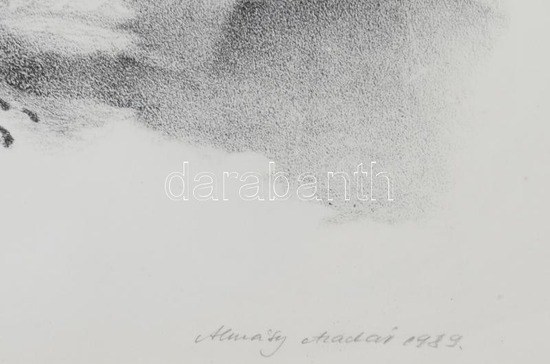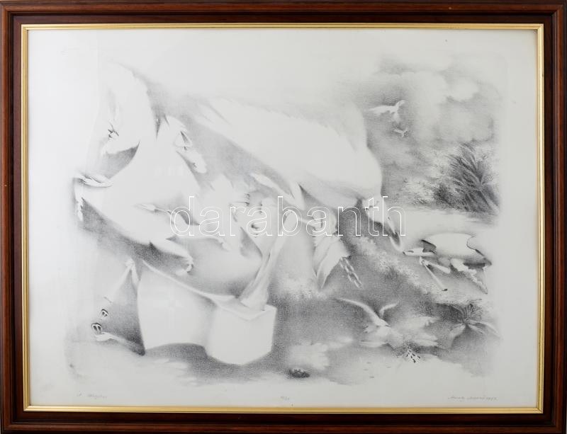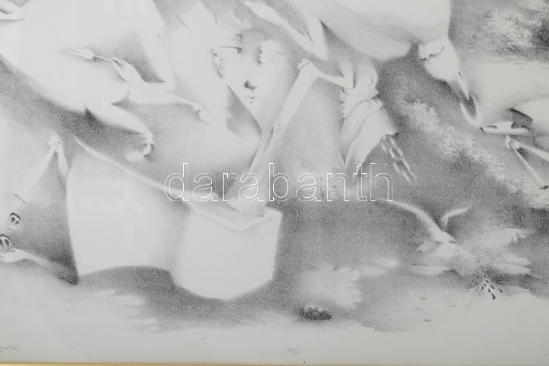 Almásy Aladár (1946-): A hitnyitás. Litográfia, papír, jelzett, számozott (10/24). 52x70 cm. Üvegezett fakeretben...