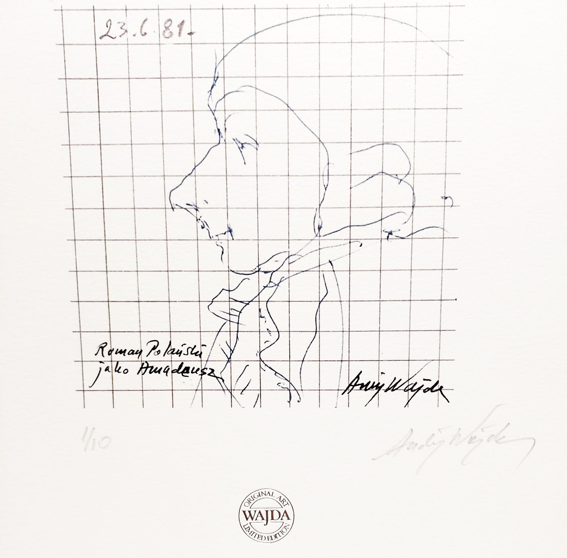 Rozmiar arkusza: 40 x 34,5 cm. Inkografia jest sygnowana przez Artysty ołówkiem p.d.: "Andrzej Wajda" oraz stemplowana tłokiem z napisem; "ORIGINAL ART - WAJDA - LIMITED EDITION". Odbitka nr 1/10. Rok powstania oryginału: 1981.