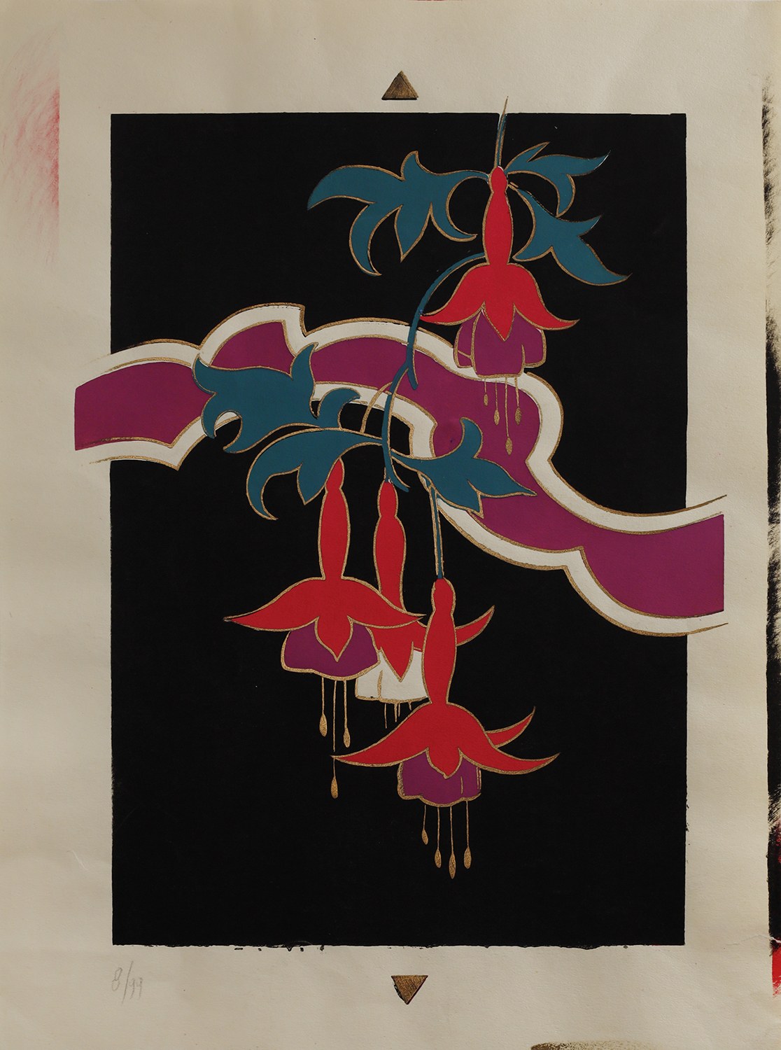 pochoir, papier, 31,5 x 23 cm; egz. numerowany: 8/99. Podklejenie naderwania marginesu, stan dobry.