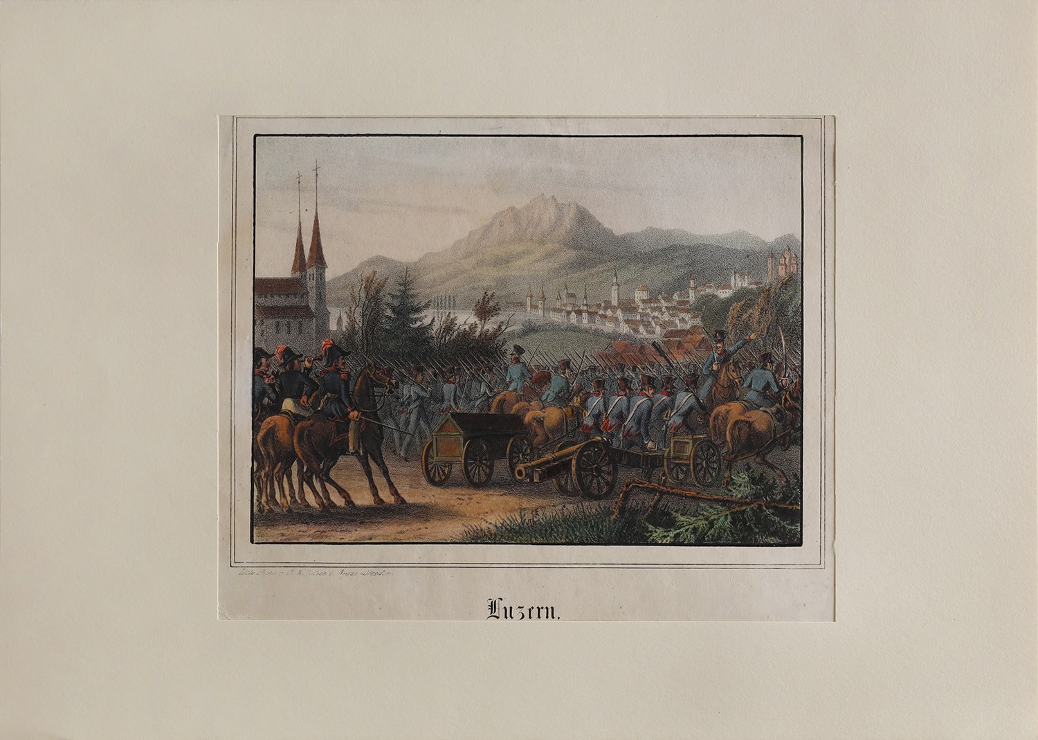 Widoki pokazują główne zabytki Lucerny, atutem jest precyzyjne malowanie pod lupą, nawet drobnych detali. Najpopularniejsza w antykwariatach jest wersja biało-czarna. Grafiki zostały wydane w 1833 r. przez Josefa Busingera w pracy pt „Luzern und seine Umgebungen. Jedna większa grafika przedstawia widok na miasto i wkraczających żołnierzy z doby napoleońskiej. Dodatkowo jedna grafika w typie poprzednich z widokiem na konserwatorium w Genewie. Łącznie 10 grafik.