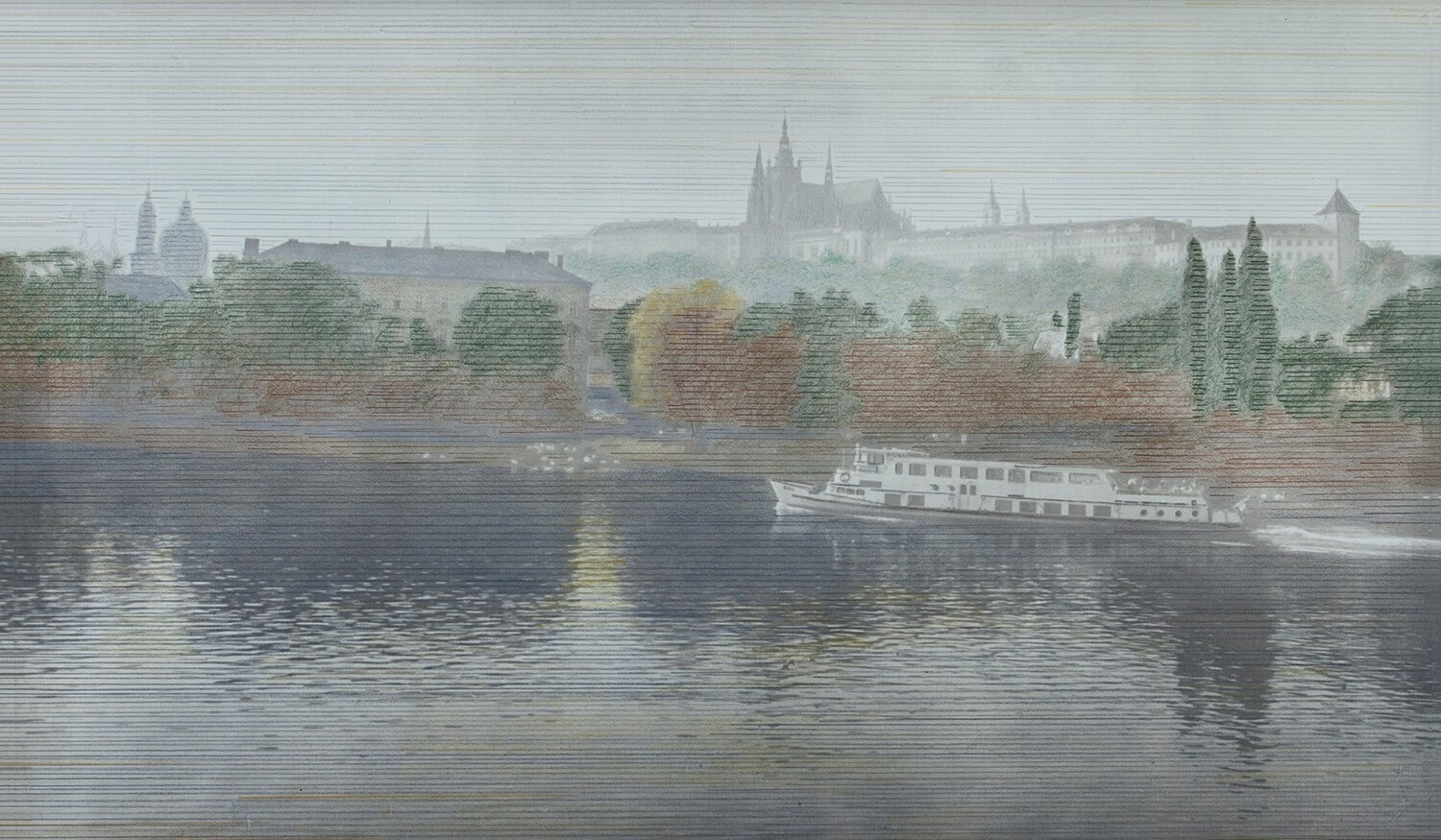 podmalowana ręcznie fotografia, papier, 27,5 x 48 cm (w świetle oprawy). Oprawiona, passe-partout, rama aluminiowa, drewniana apla, ok. 91 x 71 cm