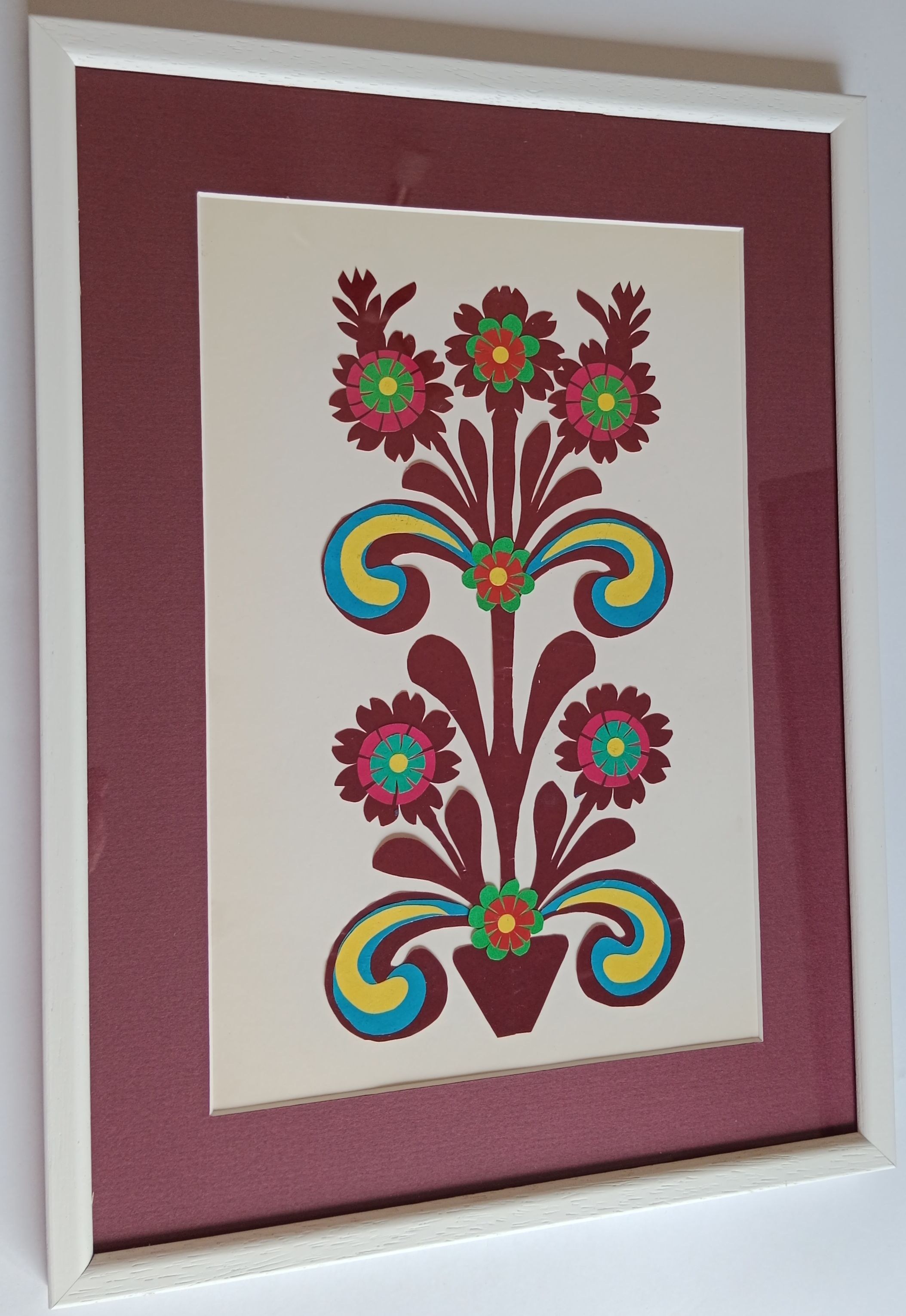ARTYSTA NIEZNANY, WYCINANKA KURPIOWSKA, NAKLEJONA NA KARTON