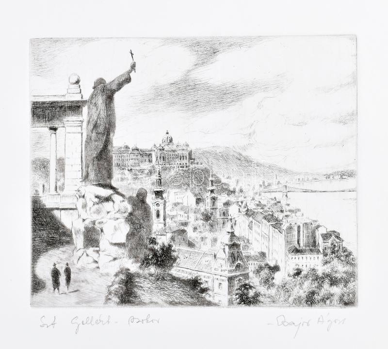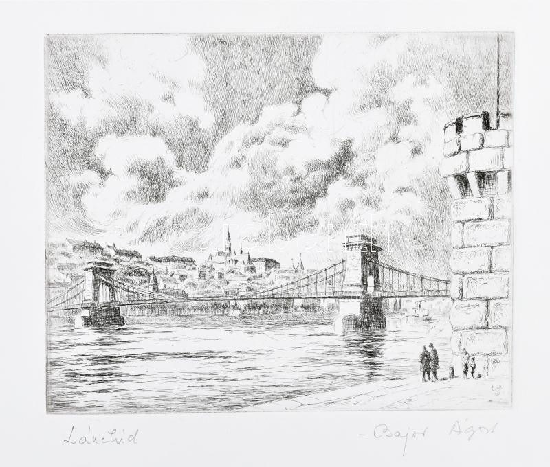 Bajor Ágost (1892-1958), 3 db budapesti grafika: Parlament, Lánchíd, Szt Gellért szobor. Rézkarc, papír...