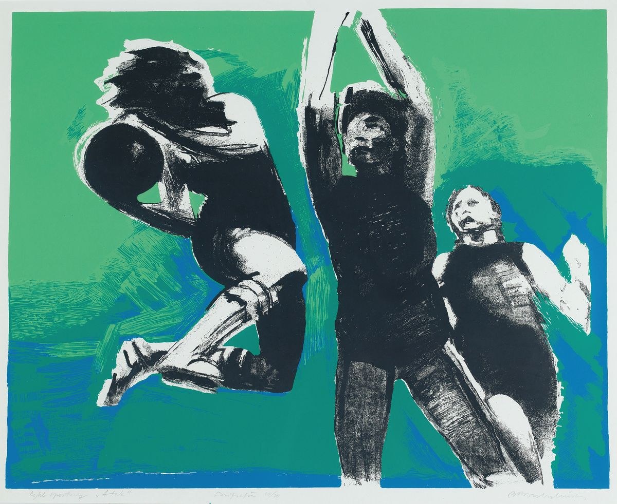 Sygnowany ołówkiem pod ryciną: Cykl sportowy „Atak” serigrafia 10/20 BogdanPrzybyliński