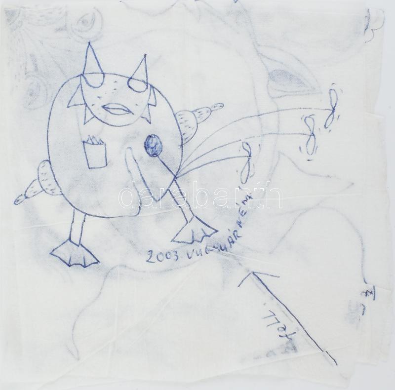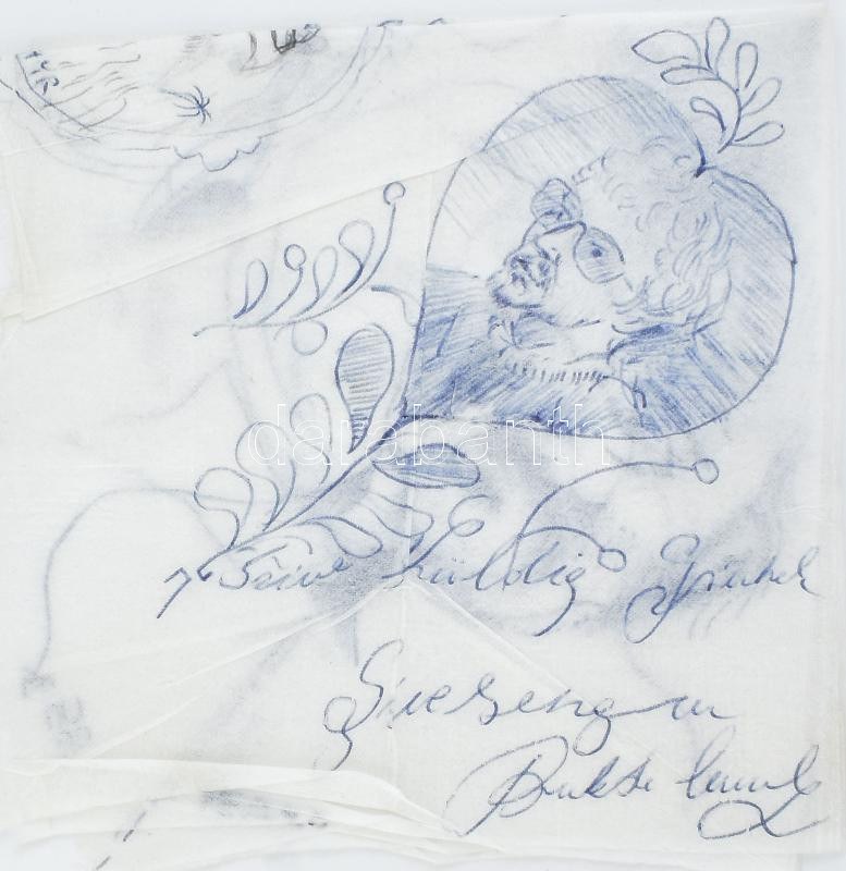 Bukta Imre (1951-), feLugossy László (1947-), Bernáthy Sándor (1949-2012) és Bereznai Péter (1955-) rajzai. Golyóstoll, papírszalvétán. Mindegyik rajz jelzett és Bernáthy rajza datált is (1977). Apró szakadásokkal, hajtásnyomokkal. Szalvéta teljes mérete: 33x32 cm