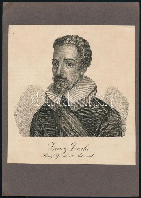 cca 1800 Francis Drake brit admirális rézmetszetű portréja 15x17 cm