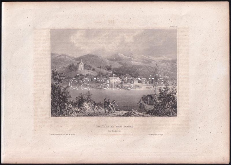cca 1850 Kiskőszeg látképe, Battina an der Donau, acélmetszet, Hildburghausen...